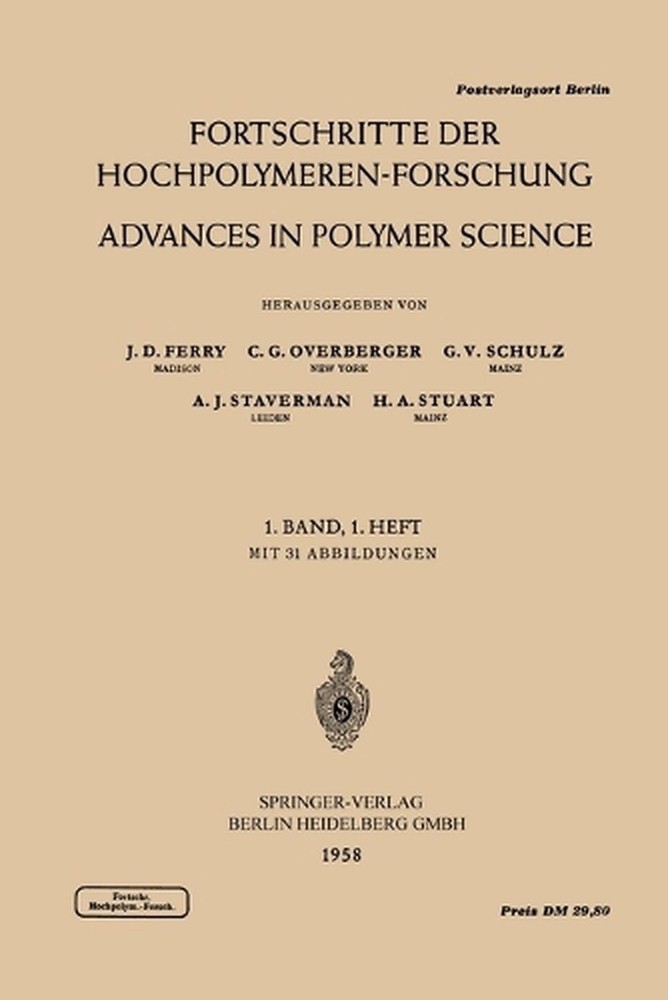 The Nile on eBay Fortschritte der Hochpolymeren-Forschung / Advances in Polymer Science by Prof. Dr. J.D. Ferry, Prof. Dr. C.G. Overberger, Prof. Dr. G.V. Schulz, Prof. Dr. A.J. Staverman, Prof. Dr. H.A. Stuart Specific ion binding by polyelectrolytes.- The study of high polymers by nuclear magnetic resonance.- Fluorine-containing polymers. I. Fluorinated vinyl polymers with functional groups, condensation polymers, and styrene polymers.- The dynamic mechanical properties of high polymers at low temperatures. FORMAT Paperback LANGUAGE English CONDITION Brand New Table of Contents Specific ion binding by polyelectrolytes.- The study of high polymers by nuclear magnetic resonance.- Fluorine-containing polymers. I. Fluorinated vinyl polymers with functional groups, condensation polymers, and styrene polymers.- The dynamic mechanical properties of high polymers at low temperatures. Promotional Springer Book Archives Details ISBN 3540022422 Series Advances in Polymer Science Language English ISBN-10 3540022422 ISBN-13 9783540022428 Media Book Format Paperback Series Number 1/1 Imprint Springer-Verlag Berlin and Heidelberg GmbH & Co. K Place of Publication Berlin Country of Publication Germany Year 1958 Publication Date 1958-01-01 Short Title FORTSCHRITTE DER HOCHPOLYMEREN Pages 158 DEWEY 540 Illustrations 158 p. Author Prof. Dr. H.A. Stuart Publisher Springer-Verlag Berlin and Heidelberg GmbH & Co. KG Audience Professional & Vocational We've got this At The Nile, if you're looking for it, we've got it. With fast shipping, low prices, friendly service and well over a million items - you're bound to find what you want, at a price you'll love! TheNile_Item_ID:139264395;