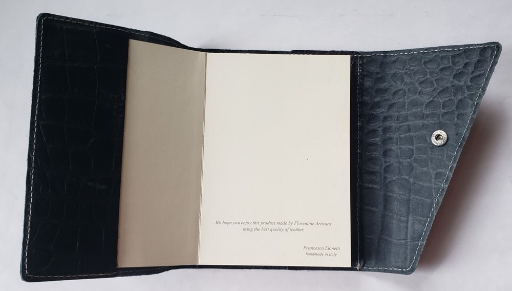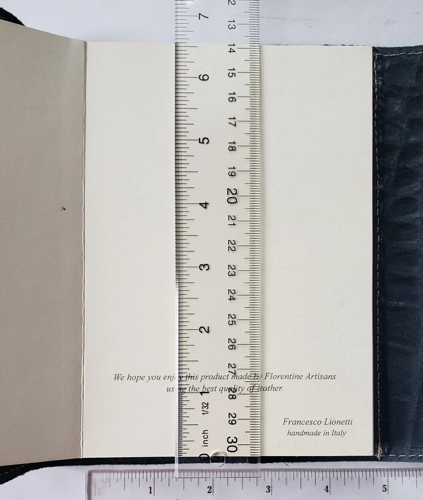 Francesco Lionetti Handmade Italian Leather Bound Journal Blank Book Leather Cover Dimensions (closed)(approximate): 7" x 5" Interior Blank Note Book Dimensions (approximate): 6.5" x 4.5" Thanks for your interest. Please ask any needed clarification questions in advance of purchase or bids. Please note that Blue Streak Collectibles does not offer combined handling/shipping discounts for multiple items. Unless noted with FREE SHIPPING, we offer a flat rate standard handling/shipping per item and utilize USPS Economy shipping with delivery confirmation/tracking (tracking numbers provided to all customers with buy-it-now or winning bids). We may determine it is best to combine shipments for multiple items purchased/won based on the logistical ability to deliver quickly from time to time but do not offer discounts for doing this. We apologize for any inconvenience but hope you will find we offer the lowest overall prices and best value available for each and every item offered for sale/auction. Thanks for shopping B.S.C.!
