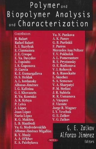 Further Details Title: Polymer & Biopolymer Analysis & Characterization Condition: New Author: G E Zaikov Contributor: G E Zaikov (Edited by), Alfonzo Jimenez (Edited by) Format: Hardback EAN: 9781600216084 ISBN-10: 1600216080 ISBN: 9781600216084 Genre: Science Nature & Math Language: English Country/Region of Manufacture: US Item Height: 180mm Item Length: 260mm Publisher: Nova Science Publishers Inc Release Date: 08/09/2007 Item Weight: 720g Release Year: 2007 Missing Information? Please contact us if any details are missing and where possible we will add the information to our listing.