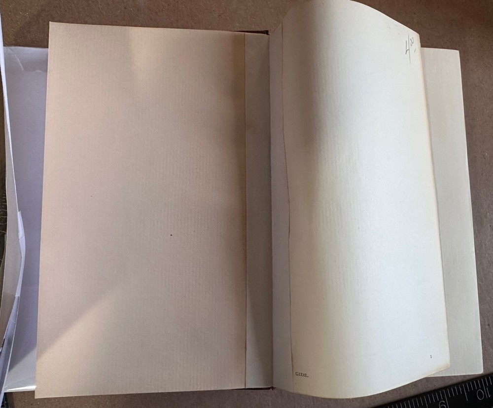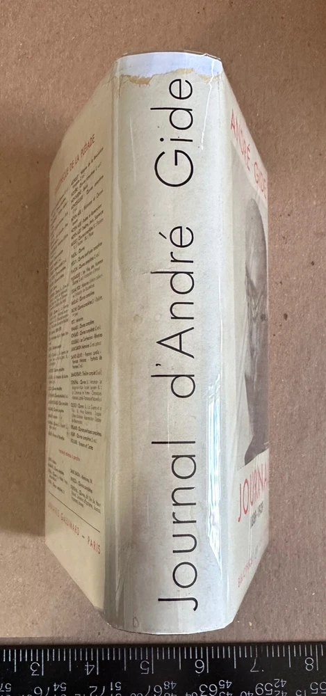 TITLE: Journal: 1889-1939 (Bibliothèque de la Pléiade) AUTHOR: Gide, André AUTHOR 2 (if applicable): n/a AUTHOR 3 (if applicable): n/a ILLUSTRATOR (if applicable): n/a PUBLISHER: Éditions Gallimard, Date: 1951 ISBN: N/A (pre-ISBN publication) FORMAT: Leatherbound, 1508 pages EDITION: Unstated Edition PRINTING [if applicable]: Unstated Printing BOOK CONDITION: Very Good JACKET CONDITION: Very Good DIMENSIONS (if available): 7.00 x 4.25 x 2.50 in. approx. KEYWORDS: Bibliothèque de la Pléiade, NRF, André Gide, Journal, 1889-1939, Éditions Gallimard, Classiques DESCRIPTION: Pléiade edition of the journal of André Gide, dating from 1889 to 1939. A second volume later appeared. All text in French with a brief introduction and an index to topics. Leatherbound edition with archival quality fine paper, in full dustjacket, and yellow ribbon bookmark. Pléïade editions are the definitive French-language editions of French and international literary texts, for americans the nearest equivalent would be the Library of America editions of classic works (similar paper and quality, although the LoA titles are clothbound rather than leatherbound). CONDITION: Slimline leatherbound omnibus edition. Wear to corners and the head and tail of the spine. Paper jacket over red-brown leather covers. Paper jacket shows some wear and chipping at the extremities, particularly at the head of the spine, it is now protected in a mylar brodart cover. Front hinge has split and been repaired with binding tape, otherwise, contents very good overall. Contents appear age-toned but unmarked save for earlier price marking on the IFEP. FROM THE BOOKSELLER: Thank you for visiting the Dactyl Books eBay Store! We are a virtual second-hand and antiquarian reseller of books specialising in History, Science, Literature, and Mystery & Detective Fiction, but we have a little bit of everything in our stocks! We are listing new items all the time, but if you are looking for a specific title or edition, don't hesitate to send it on to us and we will be glad to check and give you an opinion on how best to find your desired title. NOTES ON EDITIONS: We use a number of resources to attempt to determine the edition of the book that we are listing. My most frequently referenced resource is Zempel and Verkler's "First Editions: A Guide to Identification," although we also use other internet sources and make comparisons with listings we find on various internet sites. We strive to be extremely careful and diligent in describing our listings, but if you receive a book and don't feel that it's quite what you ordered, please contact us through the "Contact Seller" link to see what we can do for you. To avoid the chances of this happening, if you have a question about a book or other item, or would like to see additional photos, please use the "Contact Seller" link in the item description and let us know what you need. We will do our best to answer your questions *before* any sale. TERMS & ABBREVIATIONS IN OUR LISTINGS: For your convenience, here is a list of terms and abbreviations that we commonly use in listings: IBC: Inside Back Cover IBEP: Inside Back End Paper IFC: Inside Front Cover IFEP: Inside Front End Paper Text-Block: The body of the book contained between the covers. Thanks for your interest in Dactyl Books!