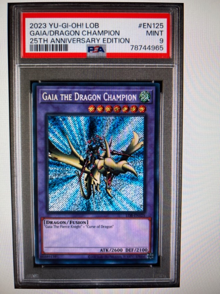 This Gaia the Dragon Champion card is a must-have for any serious Yu-Gi-Oh! collector. The Secret Rare foil shines beautifully, and the PSA 7 grade ensures top-notch condition. Pulled from the 25th Anniversary Gold Sarcophagus Tin, it’s a rare gem that stands out in any collection. The Japanese size and 1st Edition stamp add extra appeal, making it a prized piece for fans of the classic Legend of Blue Eyes era. A fantastic addition for those who appreciate high-quality, graded cards!