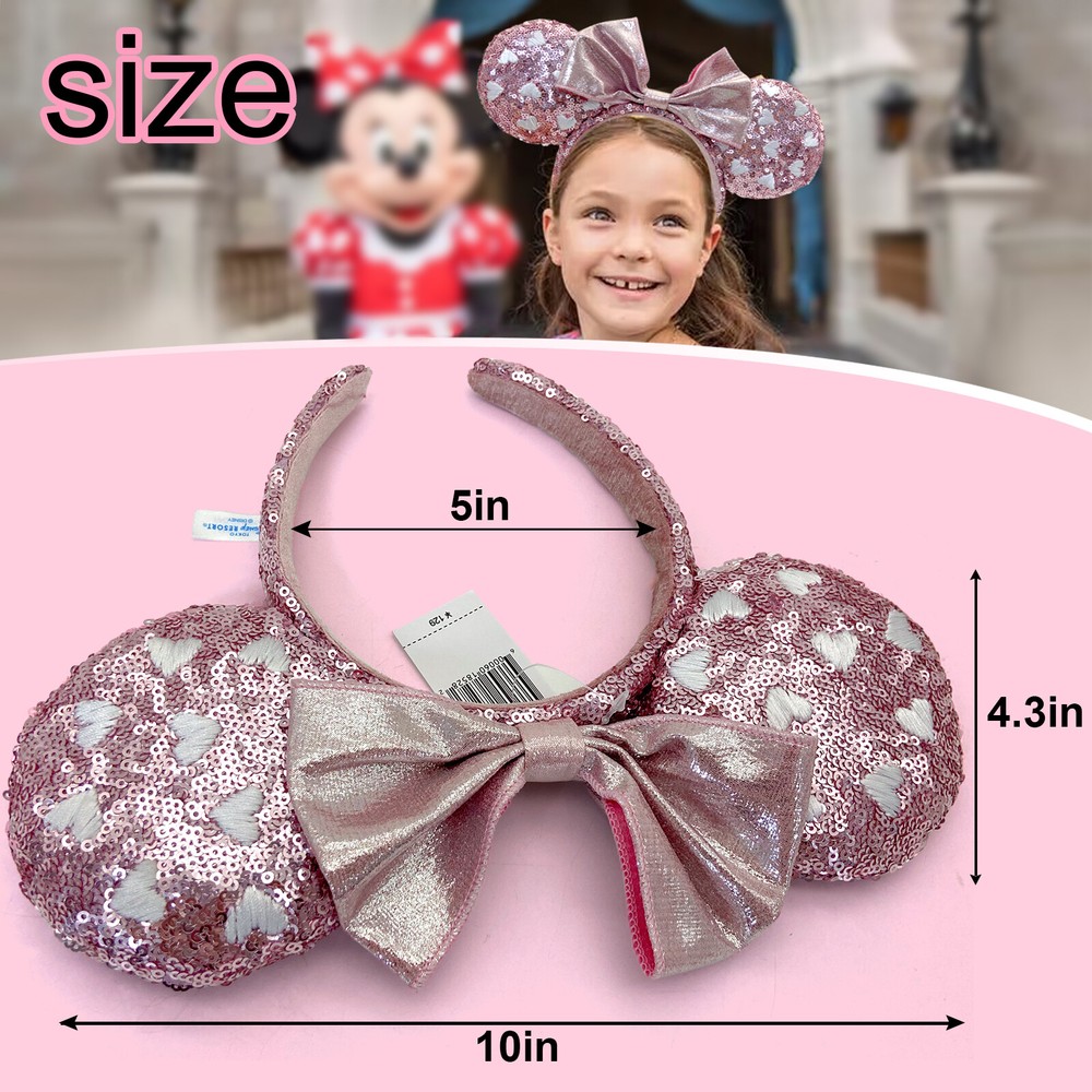 Absolutely love these Minnie Mouse ears! The sequins sparkle beautifully, and the pink bow adds the perfect pop of color. Super comfortable fit for both kids and adults—great quality and looks just like the real deal from Disney. A must-have for any fan!