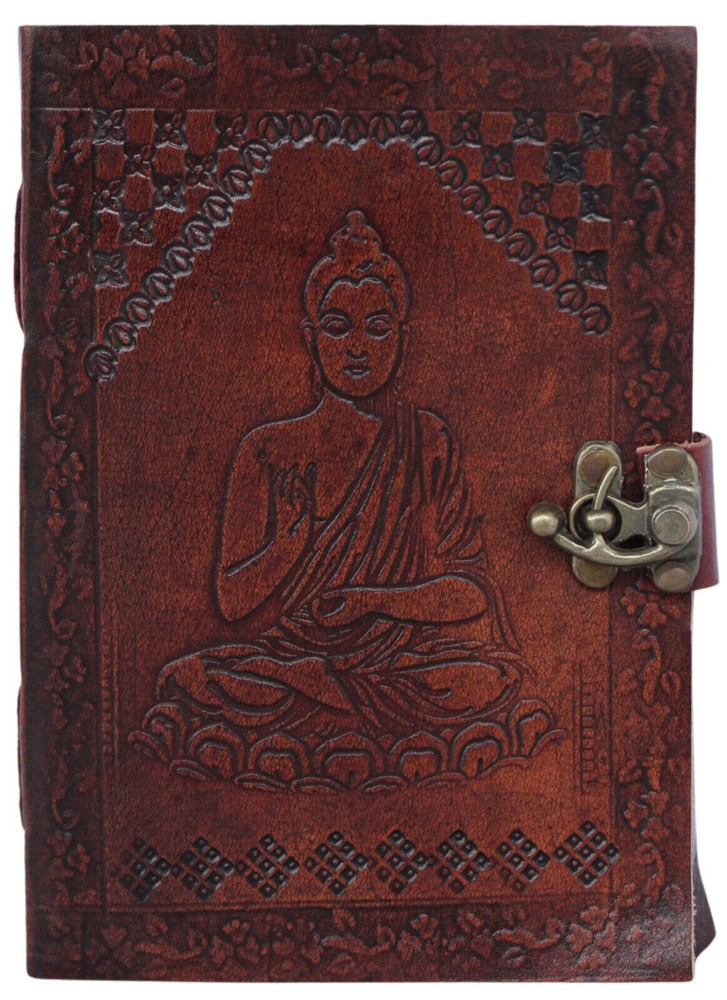 Welcome To MADOSH (Brand: Madosh- Mad Over ShoppingTM) Immerse yourself in a journey of serenity with our Leather Lord Buddha Journal, a divine creation that seamlessly combines spirituality with the art of journaling. The intricately embossed Buddha design on genuine leather serves as a constant reminder to embrace tranquillity in your writing. Perfect for journaling, meditation notes, or as a meaningful gift, this journal is designed to be a companion on your path to self-discovery. Dimension: Height:7" (18 cm) | Length: 5" (13cm) | Width: 3” (8 cm). Features: Genuine leather Gautama Buddha Embossed Clasp closure 100 sheets (200 pages) Country of origin: India Note: It is handmade and made by professional artisans. 100% Genuine leather diary. 100% recycled cotton and acid free paper used in diary.