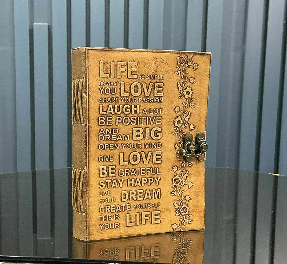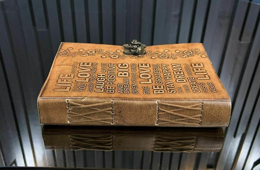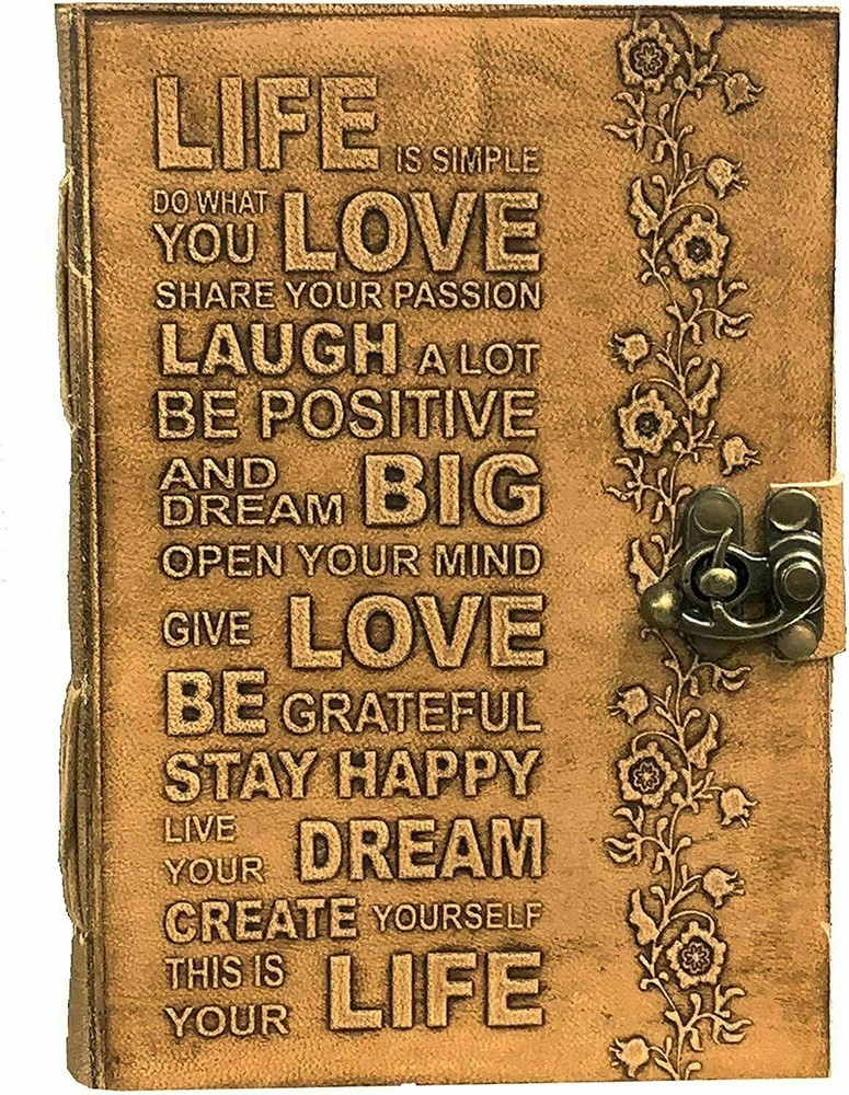 GENUINE LEATHER CRAFTSMANSHIP - Crafted with genuine leather, this leather journal offers a soft touch exterior with natural, distressed look that's truly exclusive MULTIPURPOSE JOURNAL & PLANNER - This versatile men's and women's journal can be used as an appointment book, daily journal, sketchbook, or travel diary PREMIUM QUALITY PAPER - Every leather journal notebook is filled with 100 sheets of 100gsm weight, 6.5 mm ruled, 2-sided Kraft paper that fits most pens PERFECT SIZE - Compact 7" x 5" size, easy to carry when travelling or in your daily life THE TIMELESS GIFT - A lovely treat for your loved ones for an anniversary, birthday or graduation present, or for someone starting a new adventure Handcrafted Genuine leather diary is an awesome find for book lover or literature gift. Desired daily diary or personal sketchbook making it the perfect travel companion. Ideal for alternative Artists, Traveling, Business, Teen Journals, Poetry Work, Journalists, Food Planner, etc. This notebook is especially designed to create the typical middle ages atmosphere while you let your creativity flow or use it as a planner/meeting organizer. So whether your journal is home to your innermost secrets, a repository for your most important thoughts and ideas, or simply a way of keeping on top of your to-do list, we’ve got you covered. 100% Genuine leather diary. Natural oils used to give it polished look. No chemical has been used. Color may very slightly from pictures. It is handmade and made by professional artisans. Ideal for travel and personal use - makes a perfect gift for any occasions. Dimensions: 7” (17.5 cm) (H) x 5” (12.5 cm) (L) x 1” (2.5 cm) (W) inches