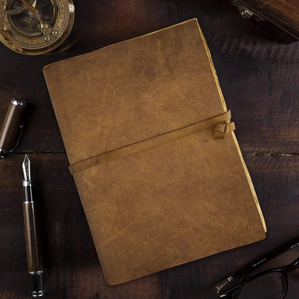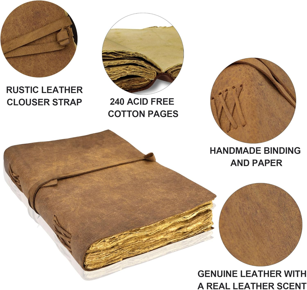 Store New Arrivals Add to Favorite View Feedback Contact Genuine Vintage Leather Journal, Scrapbook, Sketchbook, (14 X 8 Inches), Deckle Edge Paper, Handmade Notebook, Large Leather Bound Journal for Men and Women Description Unit Count 1 Count Sheet Size 14 x 8 inches Material Leather Number of Items 1 Color Brown Cover Material Leather Sheet Count 240 Material Type Leather Manufacturer Part Number OP-LJ Item Weight 3.14 pounds Paper Weight 120 Paper Finish Uncoated Recommended Uses For Product Sketching, Drawing Product Dimensions 14"L x 8"W Size 14 X 8 Inches with Leather Strap Lock FULL-GRAIN LEATHER: This is the highest quality and most durable type of leather journal. It comes from the top layer of the hide and retains the natural grain, with minimal processing. Full-grain leather often develops a patina over time, which enhances its appearance. SIZE & PAGES: Perfect Size for many users: 14 X 8 (Inches) & 240 Environmental friendly cotton unlined handmade paper and is also acid-free. VERSATILE AND ELEGANT: Our black journal is the perfect creative companion for all your needs. Its size, and deckle edge make it ideal for drawing, and writing a diary. This journal is versatile and elegant and is perfect for nature journaling, scrapbooking, and tracking life's special moments journal for men. Whether you're a teen, traveler, or poet, this journal perfectly fits your journey. NATURE-FRIENDLY JOURNAL: The perfect blend of style and sustainability. With a hand-stitched leather bound journal and 240 acid-free pages with 125 gsm. Its sturdy binding and antique button closure keep your notes secure while supporting environmentally responsible practices. Make a statement for sustainability with a medieval elegant writing companion. The unique combination of Distress Leather and Old Vintage paper makes it an ideal Book of Shadows - Spell Book, Travel Journal. TIMELESS LEATHER JOURNAL: a unique and thoughtful gift for women and men alike. Perfect for travel, daily use, gratitude, pregnancy, Bible, prayer, weddings, and more leather journal for men. Cherish memories and experiences with this enduring gift that will last for years to come. Whether you're looking for a journal for women or a journal for men, this versatile and elegant leather journal is sure to make a lasting impression. Product Description Vintage Leather Journal MATERIAL Soft & Supple Dark Brown Genuine Leather with a real leather scent. Naturally tanned with special oil. SIZE & PAGES Handmade Look Hand Sewn Binding Just The Right Size (14" X 8") For Carrying Around Or Slip In Your Bag Cotton Unlined Handmade Paper USES: Easy for handwriting, drawing or sketching and compact enough for carrying in your bag. Ideal for alternative Artists, Travelling, Business, Teen Journals, Poetry Work, Journalists. Handmade Leather Journal leather journal bound journal is made of the finest genuine leather, with handmade binding. Soft, flexible and lightweight, this journal leather is ideal for writing and sketching. We crafted it to go the distance, so fill it with your journey. Hand Sewn Binding Cotton Unlined Handmade Paper 220 Pages (Counting Both Sides) Unlined Paper Is Thick Enough That The Ink Does Not Bleed Through Just The Right Size ( 14" X 8" ) For Carrying Around Or Slip In Your Bag Easy To Carry This genuine leather journal with unlined paper is the perfect journal to capture your important memories. Its handmade design is stylish - a perfect journal for men or women. The rustic finish can accompany you in all your travels or as a daily companion to capture your thoughts. The hand stitched design will last for years to come. This leather journal for men and women is a perfect gift for any occasion. We value our customers and are committed to ensuring a wonderful experience. 100% Genuine Leather The High-quality leather cover is extremely soft and supple with an amazing texture. Its rustic finish and handmade design enhance the beauty of this elegant journal which is perfect in size to carry. Create your own Adventure Create your own masterpiece of life plans, inspirational thoughts, daily affirmations, adventures, and more. Write, Sketch, doodle, or draw, options are limitless Perfect Business Partner This all-purpose journal, planner, diary, and sketchbook will be your perfect choice for daily use, traveling, and keeping with you on your busiest days at work. Thick Unlined Vintage Paper 220 pages of plain unlined paper, handcrafted with cotton which is acid-free & tree free is thick enough to ensure the ink does not bleed through. Immaculate Craftsmanship This Genuine Leather journal built with 220 pages of excellent quality unlined paper is rich & durable. The hand-stitched design will last for years to come. Entirely handcrafted by artisans, each leather-bound journal is a work of art. A Perfect Gift for Everyone This Vintage Leather Journal makes for a special gift for friends, family, and everyone in your life. This timeless piece is a keepsake your loved ones will cherish forever. ABOUT US We offer the best prices around on high quality products. Our E-store includes media such as books, movies, music and games while offering electronics, toys, sporting apparel, clothing, tools, general home, garden items and more. SHIPPING We are always working hard to ensure your package arrives as soon as possible. Please understand that some factors like weather, high postal traffic, and the performance of shipping companies are outside of our control. We offer free shipping to the lower 48 states and ship within 2 business days of payment, usually sooner. We do not accept P.O. Boxes. Please provide a physical address. For shipping outside of the continental USA, we only use eBay's Global Shipping Program.The item is shipped to KY and then sent to the rest of the world. International customers are responsible for all duties and taxes. Continue to check out in order to calculate costs for shipping the item to your country. Messages regard