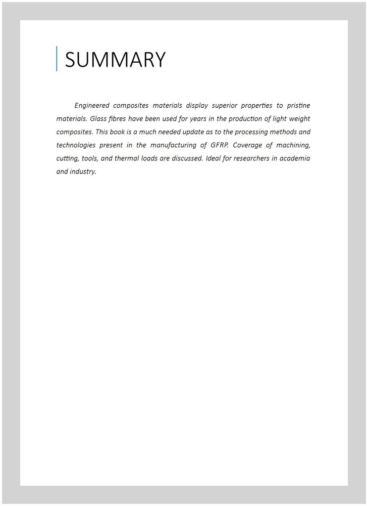 Glass Fibre-reinforced Polymer Composites : Materials, Manufacturing and Engineering, Hardcover by Babu, Jalumedi (EDT); Davim, J. Paulo (EDT), ISBN 3110608286, ISBN-13 9783110608281, Like New Used, Free shipping in the US This book is an update as to the processing methods and technologies present in the manufacturing of GFRP. It covers machining, cutting, tools, and thermal loads.