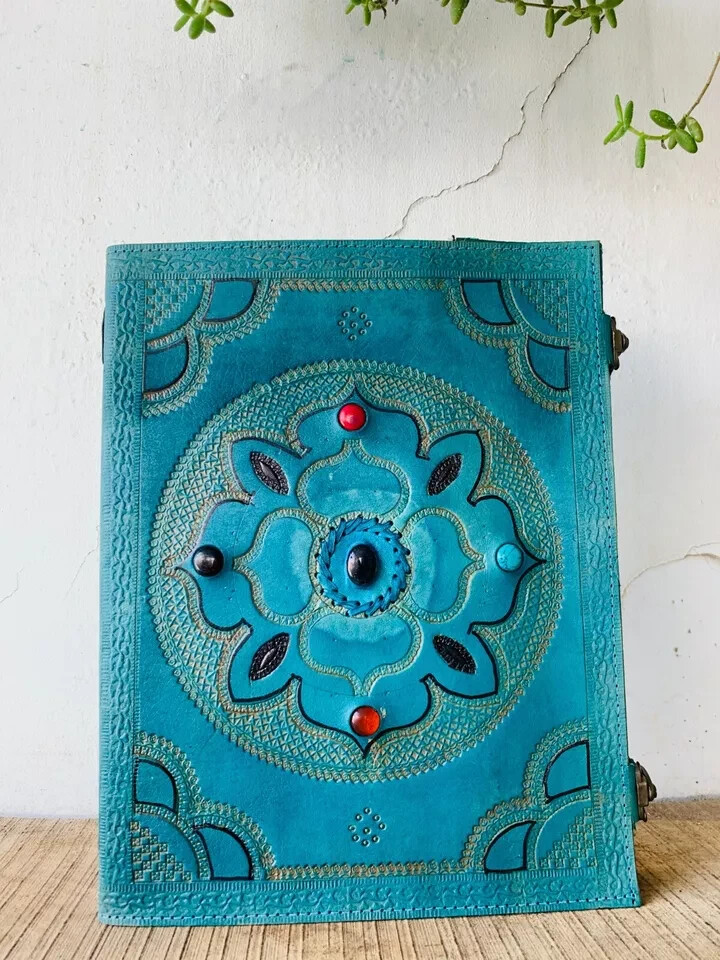 Handmade Goat Leather Journal with 7 Chakra Stones Toxic-Free Special Deal