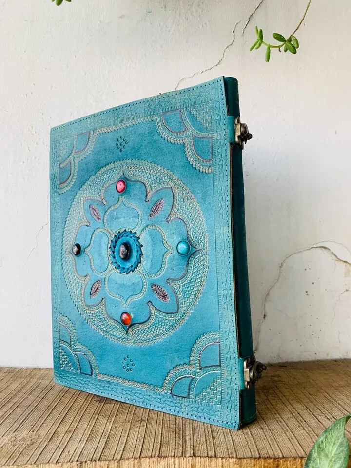 Beautiful Goat Head Leather bound Journal NEW All Sales Final All Offers Considered All Items Sold As Is Shipped Via USPS Media Mail