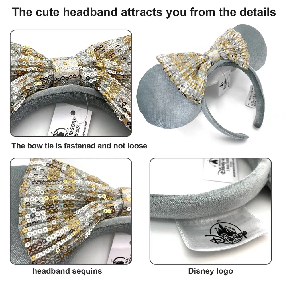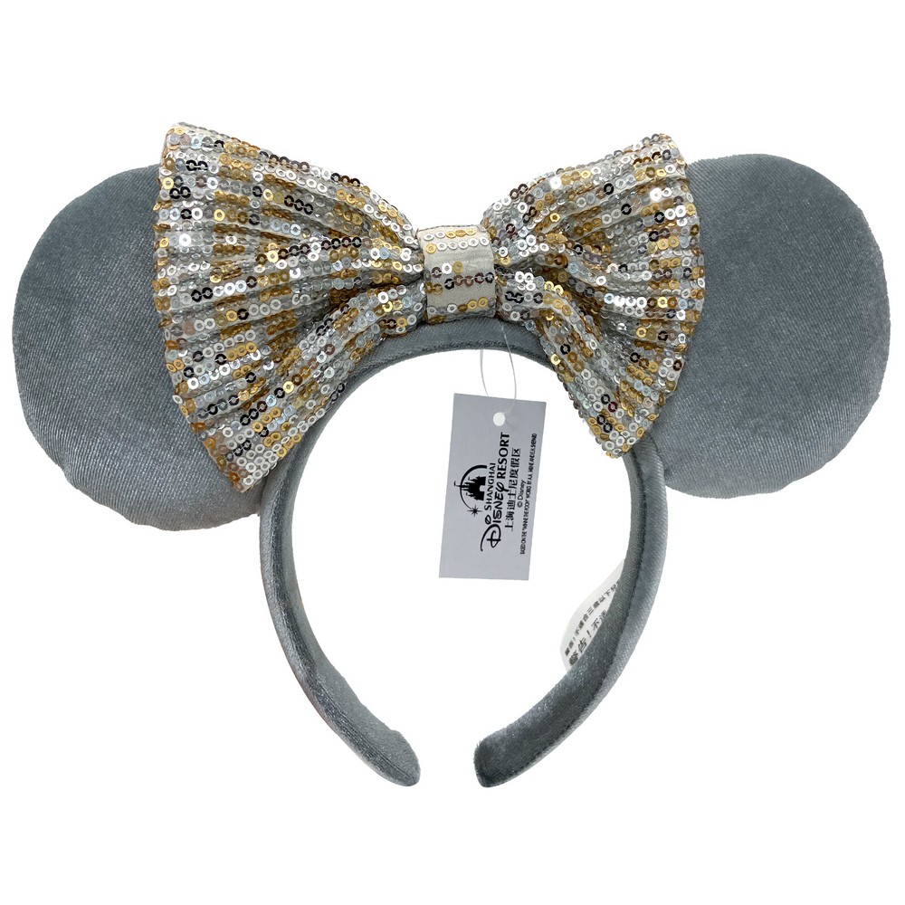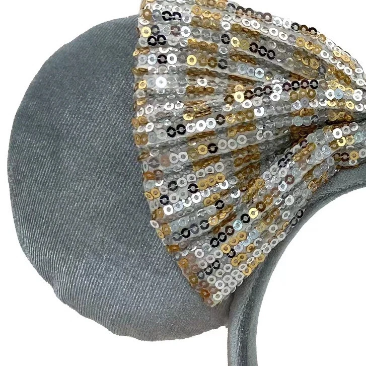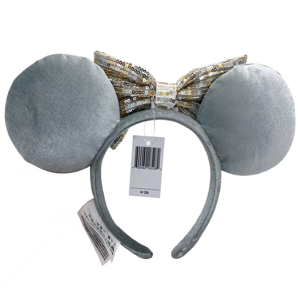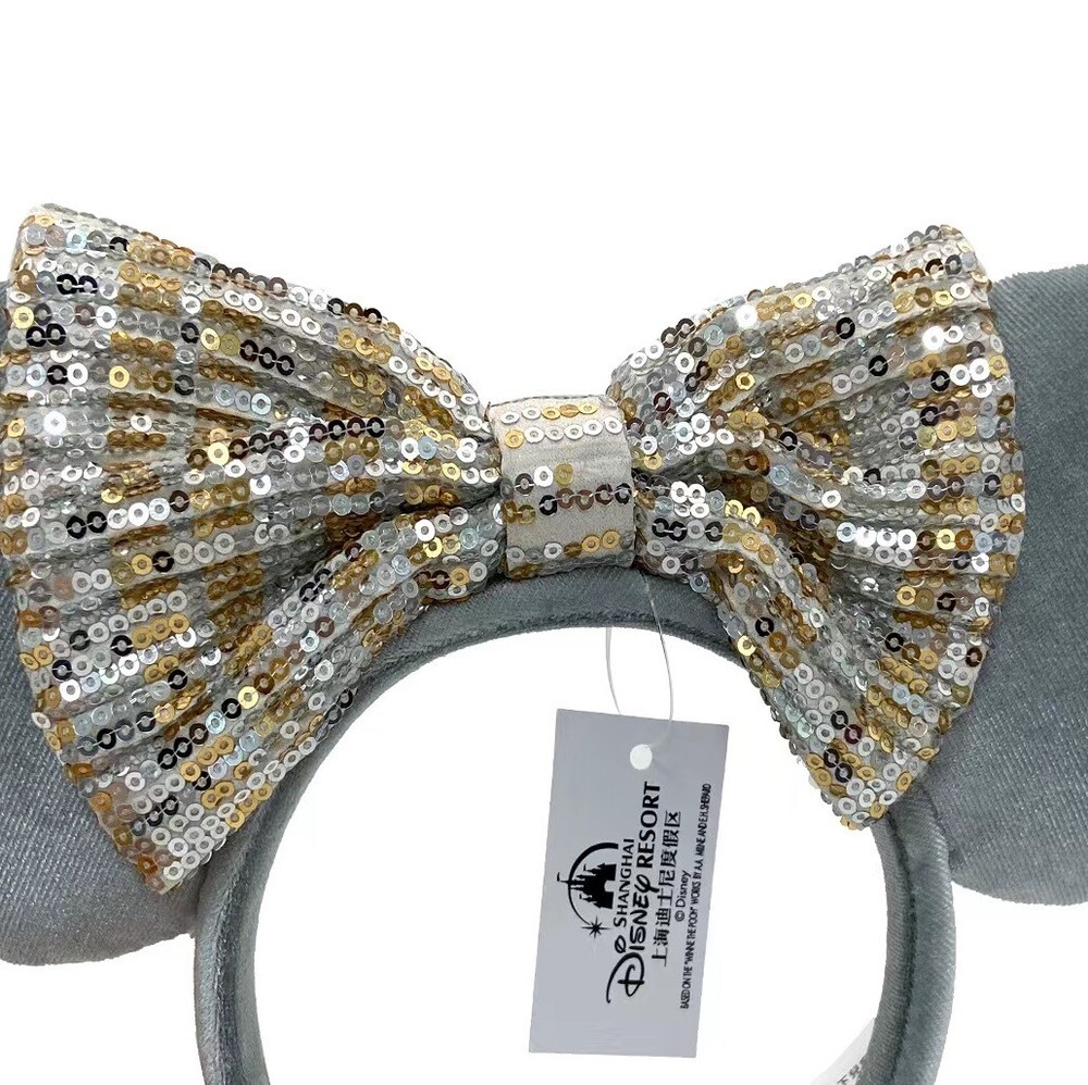 Disney Parks 2022 Minnie Mouse Sequin Bow Plush Headband in Gold Grey Silver