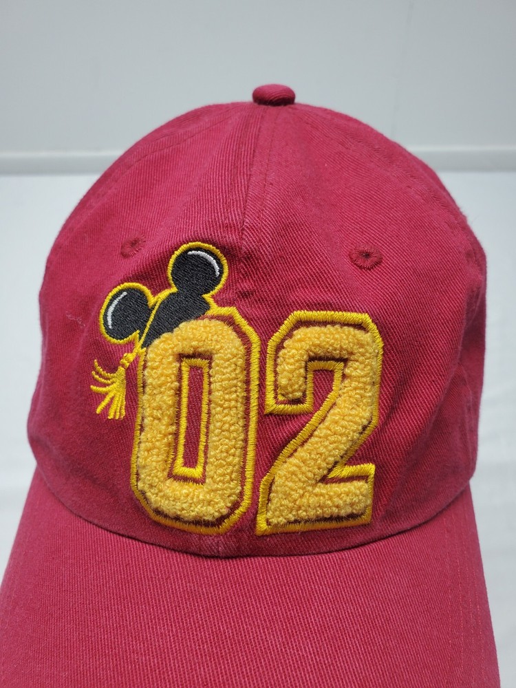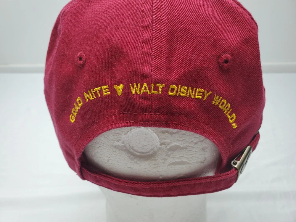 Celebrate your love for all things Disney with this Grad Nite Walt Disney World '02 Maroon Adjustable Hat Cap. With its vibrant red color and iconic Disney franchise, this hat is the perfect addition to any Disneyana collection. The hat is contemporary with its adjustable design and is suitable for any fan of all ages. The hat is a great way to show your love for the Disney franchise and the magical world of Walt Disney World. This collectible hat is perfect for fans of all ages and the ideal accessory to complete any Disney-inspired outfit.