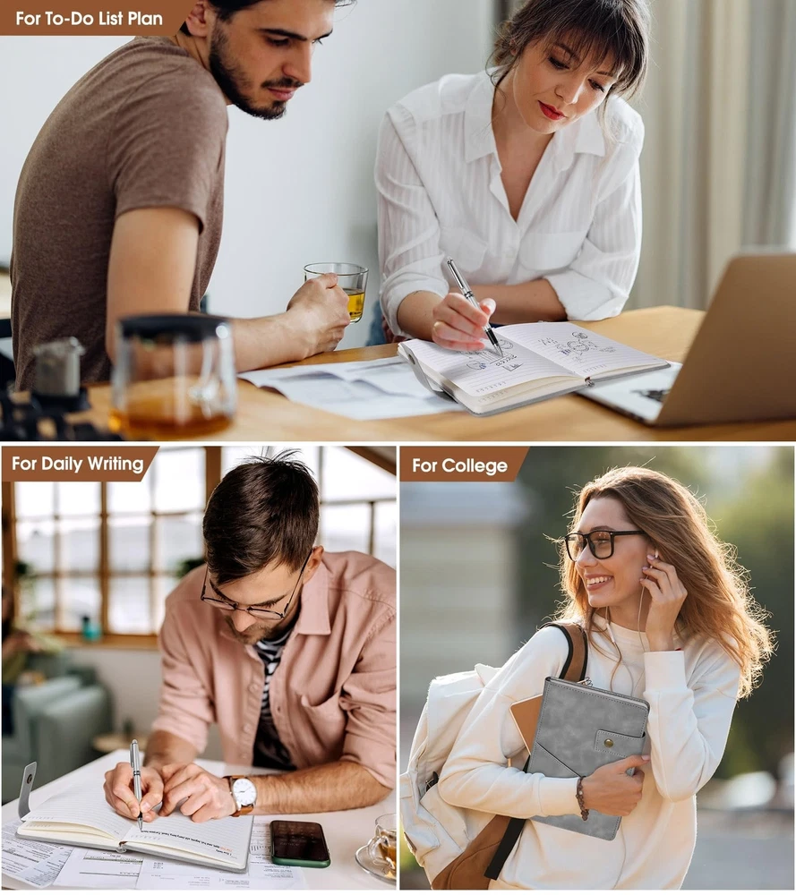 Grey A5 Lined Leather Journal Notebook for Men Women,5.9 X 8.4" Personalized Hardcover Journal with Pen,200 Pages 100 Gsm Thick Ruled Paper Daily Diary for School,Travel,Business,Work,Home Writing ✓ Free 60 Day Returns ✓ Free Express Shipping Description: Features: VALUE OF MONEY- Classic grey ruled notebook, journals are elegant, quality crafted books available at a surprisingly competive price and quality. A huge choice for everyday use, provides plenty of space for notes, lists, musings, and more. And each notebook will give away a luxury pen,This is one of our best journal pens gifts. PREMIUM THICK PAPER - 200 pages 100gsm thick lined paper, thicker 30% than normal, this grey notebook is designed to avoid feathering and the paper is ink-proof, suit for most pens, but the wettest pen inks. Archival-quality pages made from acid-free paper-resists damage from light and air, the cream paper is easy on eyes.Let your creation more freedom on the wide ruled journal to write in. FAUX LEATHER JOURNAL - This elegant Journal notebook has suede hardcover but feel soft in hand, just like a baby's skin. Fashion but durable cover adapts to the movements of body without damage. The notebook's hard cover protects the pages inside and doubles as a convenient writing surface. Great gift for any. Gusseted DESIGN - Gusseted Pocket DESIGN and Cardboard Bound Cover,metal buckle helps keep notebook securely closed, making it easy to write in the notebook from just about anywhere. This notebook provide you a high quality writing experience.Expandable Gusseted pocket for stashing loose notes,business cards, receipts, mobile phone, or other small items. Great Use & Perfect Journal GiftsIdeal for all office,school and home use,including for taking notes and keeping work in order,as a diary or journal for brainstorming ideas,creative writing or just doodling and drawing to your hearts content.This personalized journal notebook is a great birthday,mothers day,fathers day,children's day,graduation,Christmas journal Gifts.It is an ideal gift for mom,dad, teachers,classmates,colleagues,wife,husband,friends,daughters,sons and granddaughter. Product Details: Brand: vfaejll Color: Grey Theme: Book Sheet Size: A5 Pages: 200 Pages Cover Material: Faux Leather Style: Classic,Elegant Ruling Type: Ruled Special Feature: Hard Cover Number of Items: 1 Brand: vfaejll Item Weight: 13.4 ounces Product Dimensions: 8.2 x 5.5 x 0.78 inches Item model number: vfaejll155881 Color: Grey Cover Material: Faux Leather Number of Items: 1 Size: A5 Ruling: Ruled Sheet Size: A5 Manufacturer Part Number: vfaejll155881 Date First Available: October 15, 2021