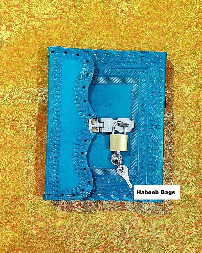 Brand Habeeb Bags Colour turquoise Theme Plain Pages 200 Pages Cover Material Leather Product Description HANDCRAFTED JOURNAL Hand-crafted with Recycled Cotton paper, perfectly complementing the brown leather Tree-free and Acid-free means you’re purchasing a product that’s less harmful to the environment The perfect number of pages, not too bulky, so it's easy to write in from the very first page Leather diary with Lock And Key The process of making these diaries is centuries old. The same families of binders who once worked for kings and palaces, have passed down the art-making this diary for you. Beautifully Soft and Durable Top Grain Leather It enhances memory and improves motivation. The healing powers of Green Stone can benefit the whole body This Stone enhances the intelligence and improves your child’s performance in exams. LEATHERVINTAGE DESIGN MULTIPURPOSE RUSTIC DESIGN with asymmetric shape at the front and decorative jute stitching on the spine adds antique charm to this lovely keepsake for men, women, students, journalists or travellers of all ages. Long leather strap wraps around the journal to secure the notebook firmly when not in use Daily Notepad or Bullet Journal Artists Sketchbooks or Poetry Work Instagram Photobook or Scrapbook Girls Diaries or Teen Journaling Food Planner and Grocery Lists Travel Diary or Thought Book Weight Watchers Records BEAUTIFUL JOURNALS THAT WILL LAST Beautifully Soft and Durable Dark Brown Genuine Water Buffalo Leather (Not Faux or PU leather used) No glue used - hand stitched binding means the pages stay firmly in place (Paper is not refillable) A lovely distressed vintage style with a gorgeous, real leather scent Genuine Leather with Antique Look Half inches wide and 2 feet long leather strap is provided to tie the diary. It gives a vintage look. An additional length of leather is also provided which act as flap and prevents the paper from dirt and tear. This luxurious antique leather notebook is 100% handcrafted with care. We make sure that our leather journal is a treasure for men, women, students, journalists, etc. Special Gift Packed in a paper box, it is an ideal inspirational birthday, Father's Day, Mother's Day, wedding anniversary, Christmas, graduation, engagement gift for siblings, for grand parents and friends. It is very trendy now. It is easy to carry in the office, any purse, handbag, backpack or travel bag. This journal makes a lovely keepsake and comes in an elegant box - simple & classic. Premium Quality Hand stitched leather binding that secures pages in the journal. This wonderful leather diary/journal is non refillable that offers a valuable, fun and collectible way to keep your ideas alive forever! No bleed-through with fountain pens so any type of pen can be used in this real leather notebook.. Perfect For Daily Writings 100 sheets/200 pages (counting both sides) of plain, white/cream colored paper which makes plenty to jot down a note, memories, daily plans, scribble a rough sketch or ideas for your poetry, novel or bullet journal.