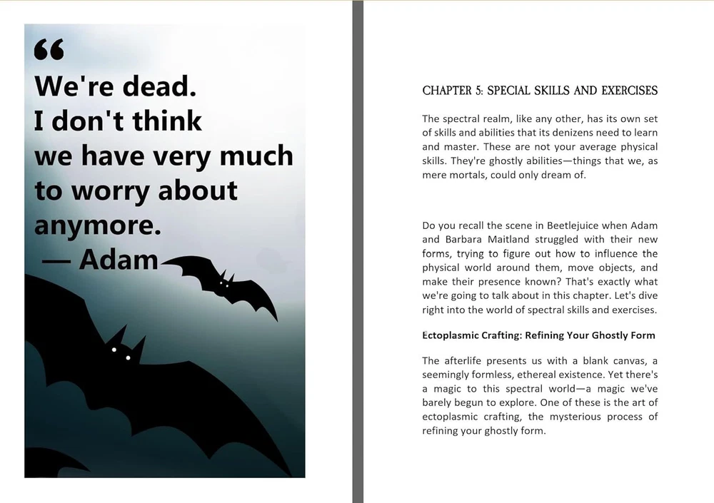Store New Arrivals Add to Favorite View Feedback Contact Handbook for the Recently Deceased: the Afterlife - Halloween Gifts Description Publisher Pooper Publishers (August 18, 2024) Paperback 236 pages Dimensions 6 x 0.54 x 9 inches Item Weight 13.7 ounces ISBN-10 1963674790 ISBN-13 978-1963674798 price Limited Time Offer shipping Fast & Free customer_service ⭐⭐⭐⭐⭐ The Ultimate Halloween Gifts: Handbook for the Recently Deceased BEETLEJUICE JOURNAL & HANDBOOK Are you a fervent Beetlejuice fan? Have you always wondered about the mysterious "Handbook for the Recently Deceased" that captivated you throughout the film? Good news! The long-awaited treasure, inspired by the iconic movie prop, is finally here - and it's no empty mock-up, but the real deal! Prepare to delve deep into the supernatural as you explore pages filled with instructions on levitation, haunting, and so much more. This handbook is a veritable encyclopedia of the ethereal, all housed in a beautifully designed cover that faithfully recreates the look of the movie's unforgettable prop. Perhaps you were skeptical, expecting a novelty blank journal. Banish those thoughts! This handbook is crammed full with useful (or at least entertaining) information. All the references you loved from the movie, plus even more secrets of the afterlife, are waiting for you in this truly unique tome. The handbook is designed with readability in mind, boasting a large text font that's easy on the eyes - a feature anyone can appreciate. And for those die-hard Beetlejuice fans among you, you're sure to resonate with one fellow fan who declared, "As someone who grew up watching Beetlejuice on repeat, I bought this book without hesitation and would definitely buy again!" Indeed, the "Handbook for the Recently Deceased" is an absolute must-have for any Beetlejuice fan's collection. Whether you're a long-time follower of the movie or a newfound fan, you'll appreciate the nostalgic nod and captivating content of this handbook. Don't miss out on the opportunity to secure this beloved piece of Beetlejuice lore. It's time to turn the page to your new adventure in the afterlife! Scroll Up Now and Click The Buy Button To Get Started! ABOUT US We offer the best prices around on high quality products. Our E-store includes media such as books, movies, music and games while offering electronics, toys, sporting apparel, clothing, tools, general home, garden items and more. SHIPPING We are always working hard to ensure your package arrives as soon as possible. Please understand that some factors like weather, high postal traffic, and the performance of shipping companies are outside of our control. Your order will be ship within 2 business days of payment, usually sooner. We can't provide P.O. Boxes shipping for some regions. Please provide a physical address for unaccepted regions. There may be minor delays in shipping to P.O. Boxes. RETURNS We offer a 30-Day Return Policy on items which you are not completely satisfied with. You have the option for a full-refund or an exchange of the item. No returns are available on items shipped outside of the USA. PAYMENT We accept PayPal. CONTACT US This page content is yet to come Please ad us to your favorite seller and visit again later Thank You CUSTOMER SATISFACTION & FEEDBACK We try our very best to make sure every customer is completely satisfied. If there's a problem, message us! We're happy to help. Your feedback very important to us, after you get your package and you are s atisfied with our service please leave us positive feedback