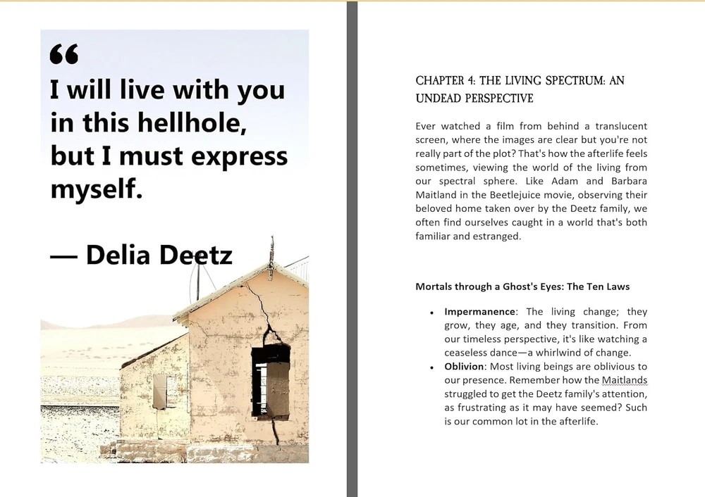 The Ultimate Halloween Gifts: Handbook for the Recently Deceased BEETLEJUICE JOURNAL & HANDBOOK Are you a fervent Beetlejuice fan? Have you always wondered about the mysterious "Handbook for the Recently Deceased" that captivated you throughout the film? Good news! The long-awaited treasure, inspired by the iconic movie prop, is finally here - and it's no empty mock-up, but the real deal! Prepare to delve deep into the supernatural as you explore pages filled with instructions on levitation, haunting, and so much more. This handbook is a veritable encyclopedia of the ethereal, all housed in a beautifully designed cover that faithfully recreates the look of the movie's unforgettable prop. Perhaps you were skeptical, expecting a novelty blank journal. Banish those thoughts! This handbook is crammed full with useful (or at least entertaining) information. All the references you loved from the movie, plus even more secrets of the afterlife, are waiting for you in this truly unique tome. The handbook is designed with readability in mind, boasting a large text font that's easy on the eyes - a feature anyone can appreciate. And for those die-hard Beetlejuice fans among you, you're sure to resonate with one fellow fan who declared, "As someone who grew up watching Beetlejuice on repeat, I bought this book without hesitation and would definitely buy again!" Indeed, the "Handbook for the Recently Deceased" is an absolute must-have for any Beetlejuice fan's collection. Whether you're a long-time follower of the movie or a newfound fan, you'll appreciate the nostalgic nod and captivating content of this handbook. Don't miss out on the opportunity to secure this beloved piece of Beetlejuice lore. It's time to turn the page to your new adventure in the afterlife! Scroll Up Now and Click The Buy Button To Get Started!