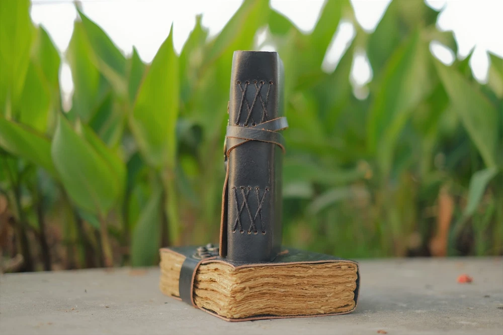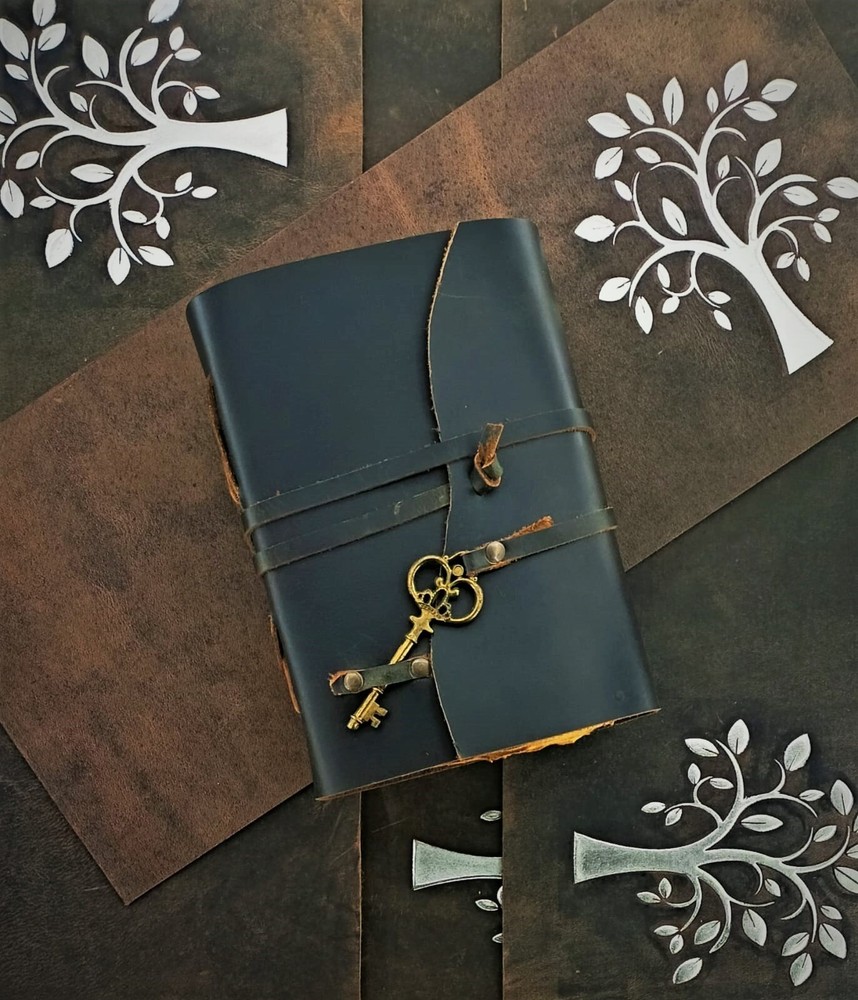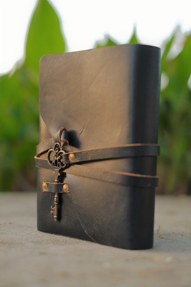 VINTAGE LEATHER JOURNAL by AR Artifact Description: Experience the timeless elegance of the Vintage Leather Journal, a perfect writing companion for both women and men. Crafted from genuine cruelty-free buffalo leather, each journal is unique in look and shade, naturally tanned with oils and free from chrome. Features: Genuine Buffalo Leather: Each journal is made from naturally tanned, cruelty-free leather, ensuring a unique and eco-friendly product. Sturdy Binding: The journal features a belt wrap-around closure with an antique brass lock, ensuring your pages stay secure. The hand-stitched binding prevents any pages from coming loose. High-Quality Paper: Filled with handmade deckle edge paper made from recycled cotton waste, this journal is perfect for writing, sketching, and various art mediums. The no-bleed paper is ideal for watercolor, acrylics, pastels, and more. Perfect Gift: This vintage-inspired journal makes a timeless and exquisite gift for women, men, teens, and grandparents. It's perfect for anniversaries, birthdays, graduations, or anyone embarking on a new adventure. Specifications: Size: 7 x 5 inches Pages: 200 pages of antique deckle edges handmade paper Color: Black Give the gift of creativity and timeless elegance with this Vintage Leather Journal from AR Artifact. Perfect for anyone who appreciates quality and uniqueness in their writing and sketching tools.