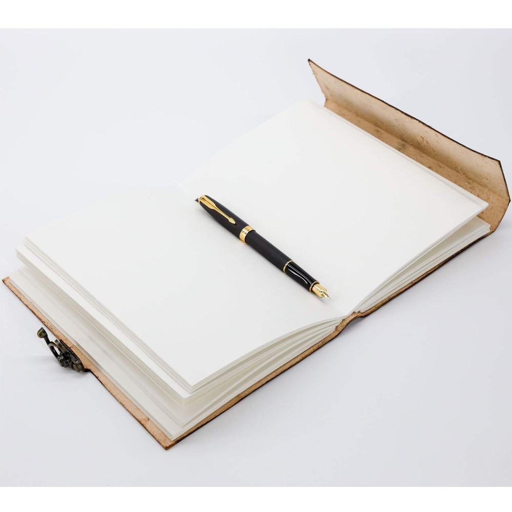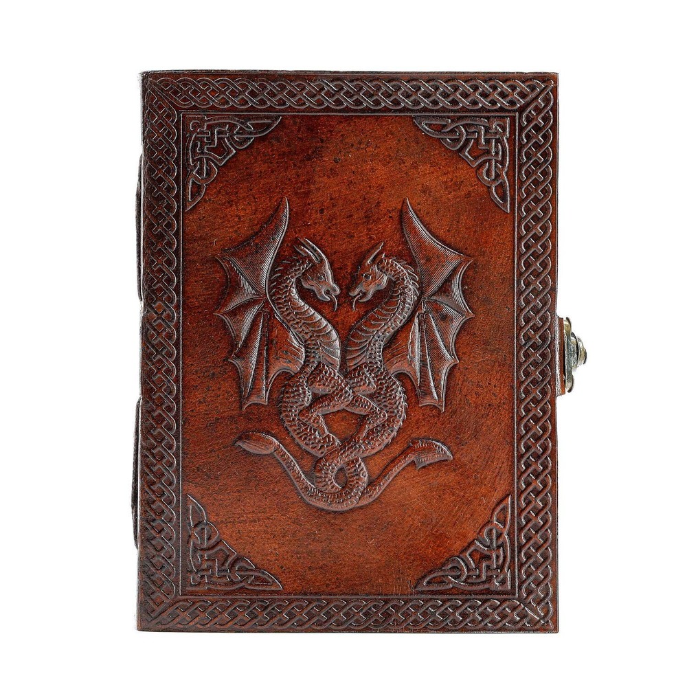 Handmade Leather Double Dragon Journal | Writing Notebook Diary | Bound Daily Notepad for Men & Women Unlined Paper Medium, Writing pad for Artist, Sketch Description Features: HANDCRAFTED FROM TOP GRAIN BUFFALO LEATHER: Each of our journals is handmade by skilled artisans using PREMIUM WATER BUFFALO LEATHER AND RECYCLED COTTON PAPER and features a BEAUTIFULLY CRAFTED DESIGN of Dragon leather cover, Which Makes it perfect for use as a LEATHER NOTEBOOK, SKETCHBOOK, NOTEPAD, DIARY and JOURNAL. PREMIUM MATERIALS, GREAT SIZE: Unlike an average journal that may be filled with low-quality paper that degrades the writing experience. Our Leather journals are made with Premium MATERIALS, Like Top Grain Water Buffalo Leather and PREMIUM 125 gsm EARTH-FRIENDLY PAPER that is perfect to write on. NO BLEED-THROUGH PAGES: BALL PEN AND SLOW FOUNTAIN PEN FRIENDLY. The journal measures 8 inches in height x 6 inches width x 1.5-inch Thickness TELL YOUR STORY: We designed this classic leather journal for men and women as a time capsule for your thoughts. Capture your important memories, accomplishments, life-changing moments and evolving dreams as a keepsake to reflect upon in years to come. PERFECT GIFT AND COLOR OPTIONS FOR EVERY INDIVIDUAL: Makes an Awesome Anniversary, Valentine's, Christmas, and Birthday Gift. Great gift for women and men Artists, and travellers. AVAILABLE IN 2 colours and 2 sizes. OUR 1-YEAR REPLACEMENT WARRANTY: Your purchase is risk-free if by any chance your handmade journal arrives damaged or you find any faults with the craftsmanship, Kindly let us know directly and we will send you a free replacement or a full refund within a year of purchase Product Details: Brand: Komal's Passion Leather Color: Brown Theme: Book Sheet Size: Medium Pages: 200 Pages Cover Material: Leather Style: Classic Ruling Type: Plain Special Feature: Leather Product Dimensions: 8"L x 6"W x 1.5"Th Brand: Komal's Passion Leather Item Weight: 1.19 pounds Product Dimensions: 8 x 6 x 1.5 inches Color: Brown Cover Material: Leather Material Type: leather Number of Items: 1 Size: 8 x 6 Ruling: Plain Sheet Size: Medium Manufacturer Part Number: S Date First Available: November 28, 2020 Handling We will ship all orders within 3 business day of payment. Delivery We Do Not Ship Outside of the Continental US. Return Policy All items qualify for returns within 30 days of receipt. Buyer is responsible for return shipping on any item that is not damaged. Feedback We take our reputation seriously, we buy and sell online, so we understand the value of trust. If you are unsatisfied with your order, please contact us and we will work with you to resolve it to your satisfaction.