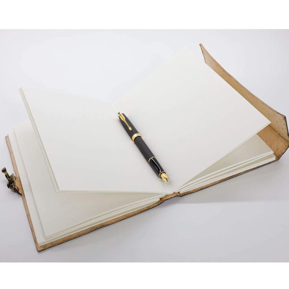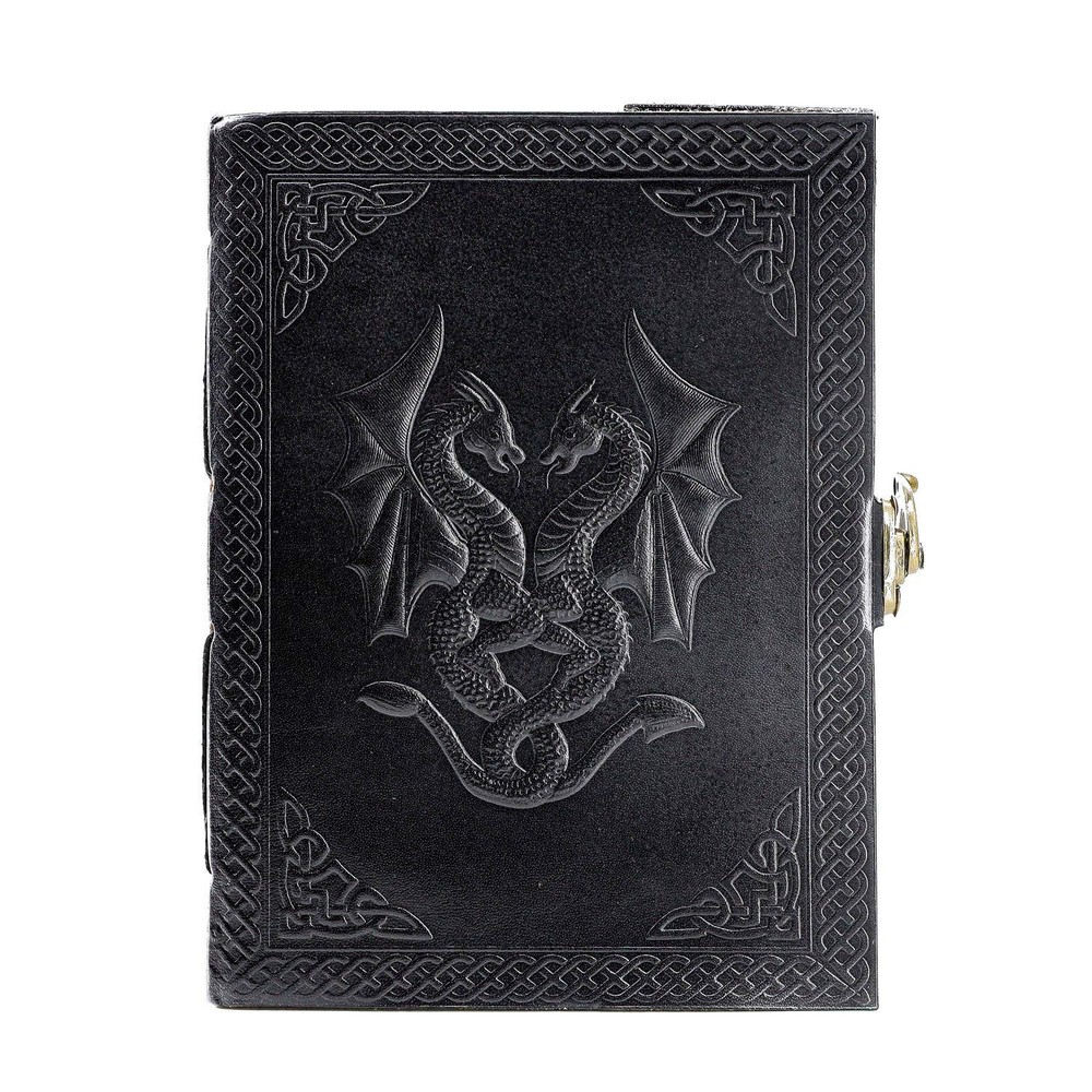 HANDCRAFTED FROM TOP GRAIN BUFFALO LEATHER: Each of our journals is handmade by skilled artisans using PREMIUM WATER BUFFALO LEATHER AND RECYCLED COTTON PAPER and features a BEAUTIFULLY CRAFTED DESIGN of Dragon leather cover, Which Makes it perfect for use as a LEATHER NOTEBOOK, SKETCHBOOK, NOTEPAD, DIARY and JOURNAL. PREMIUM MATERIALS, GREAT SIZE: Unlike an average journal that may be filled with low-quality paper that degrades the writing experience. Our Leather journals are made with Premium MATERIALS, Like Top Grain Water Buffalo Leather and PREMIUM 125 gsm EARTH-FRIENDLY PAPER that is perfect to write on. NO BLEED-THROUGH PAGES: BALL PEN AND SLOW FOUNTAIN PEN FRIENDLY. The journal measures 8 inches in height x 6 inches in width x 1.5-inch Thickness TELL YOUR STORY: We designed this classic leather journal for men and women as a time capsule for your thoughts. Capture your important memories, accomplishments, life-changing moments and evolving dreams as a keepsake to reflect upon in years to come. PERFECT GIFT AND COLOR OPTIONS FOR EVERY INDIVIDUAL: Makes an Awesome Anniversary, Valentine's, Christmas, and Birthday Gift. Great gift for women and men, Artists, and travellers. AVAILABLE IN two colours and 2 sizes. OUR 1-YEAR : Your purchase is risk-free if by any chance your handmade journal arrives damaged or you find any faults with the craftsmanship, Kindly let us know directly and we will send you a free or a full within a year of purchase