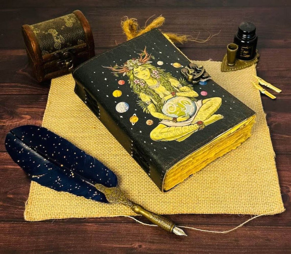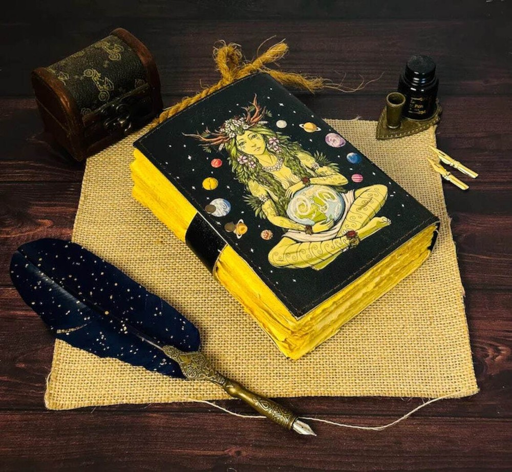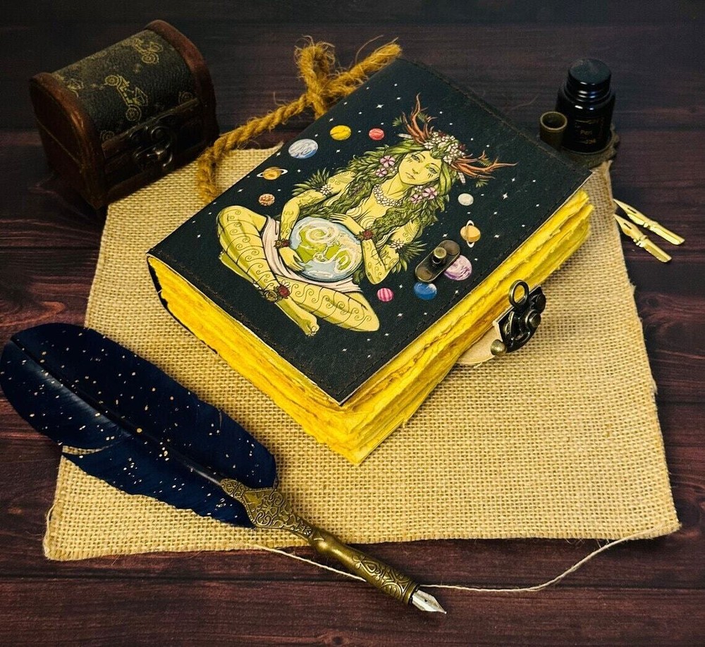 MOTHER EARTH - Leather journal witchcraft book of shadows notebook is made with 200 pages of Antique Paper which looks like it was pulled from history. You will fall in love with the the antique handmade cotton paper which is unique to our Vintage Journal Noteboo The vintage clasp lock will keep all your valuable writing locked inside.Sturdy hand stitched binding to make sure that no paper comes out loose from your spell notebook. The witchcraft supplies journal is printed with a special seven stone called “Chakra healing” which helps to reveal inner truth within yourself and encourage self-awareness and self expression. We have taken extra to make sure that the emboss is perfect in every piece. Can be used as a notepad, journal, writing notebook, sketch book. 1.25 inch thickness, easy for handwriting, drawing or sketching and compact for carrying in your bag. Ideal for alternative Artist Sketchbooks, Photo Album, Traveling Notes, Business Executive, Logbook, Poetry Work, Journalists, Food Planner, Instagram Scrapbook and Bible Journaling. Perfectly Sized For Multi-Purpose Use: Length 5", Width 1", Height 7" Inches, This Easy To Carry Personal Diary Is Perfect To Use As A Health Journal, Sketchbook, And Poetry Journal. It’S An Ideal Journal Which Records Your Daily Thoughts And Life Lists. And Also Good For Designing, Doodling, Or Calligraphy Of Your Choice.