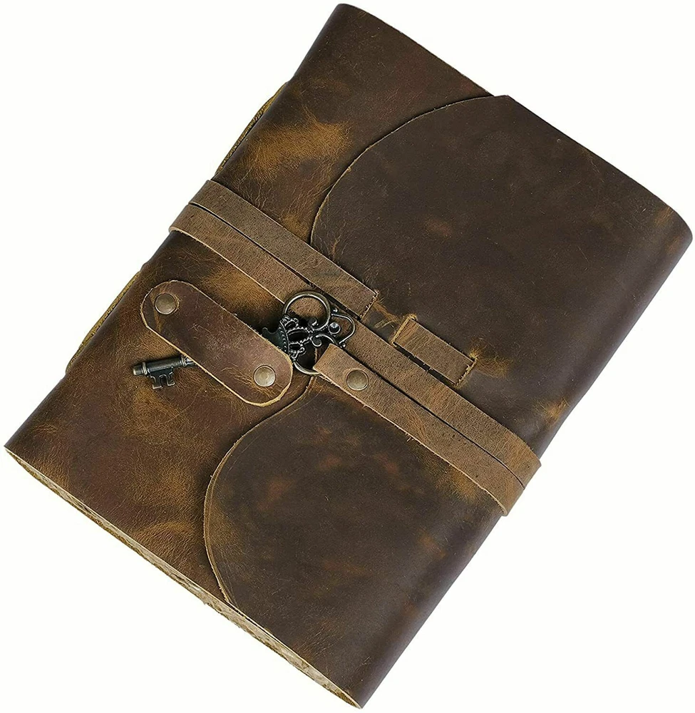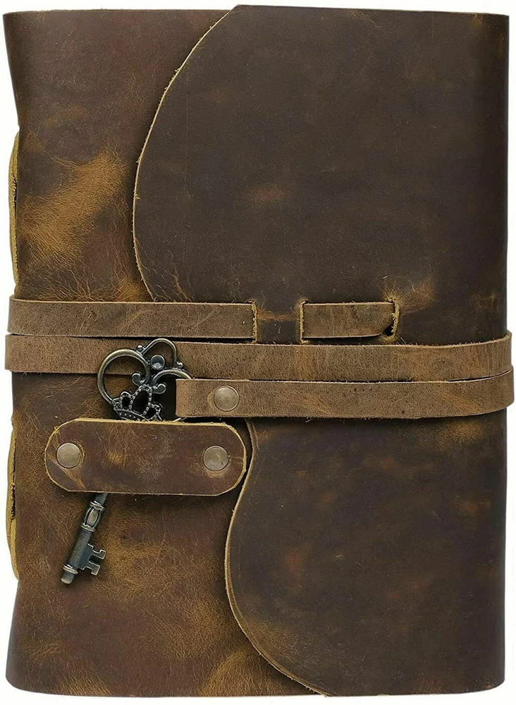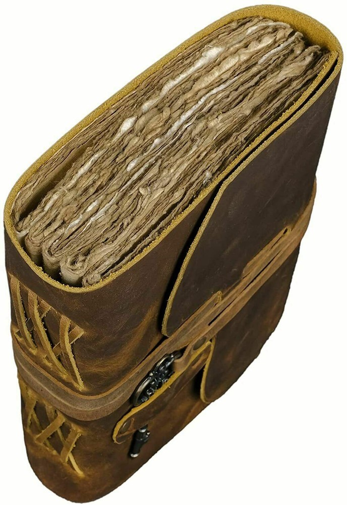 ✔️ PERFECT HANDCRAFT JOURNAL - Made from 100% Buffalo Leather with Antique Deckle Edge Paper. This Book Is Hand Crafted by Artisans Working with Leather for Decades. The Color of The Journal Is Very Unique Vintage Brown. ✔️ Use Any Kind Of Pen - Write/sketch/doodle on your journal notebook with a Fountain Pen CalligraphyPen, Ball Pen, Brush Pen, Acrylic Colours, Watercolor. IDEAL USE AND PERFECT GIFT – Perfect Use for Business Executive, Poetry Work, Journalists, Craftsman, Writer. A Lovely Treat for Your Loved Ones for An Anniversary, Birthday or Graduation Present, Or for Someone Starting A New Adventure and A Perfect Gift for Those Who Love Vintage One. ✔️ Dimension – (7” X 5” X 1.5”) With Uncut Deckle Edge Paper, Easily Handle Notebook, You Can Fit with Minimum Space, Easily Handle in Long Journey. Once You Have Used It You Will Feel Like You Have the Best Journal in the World. ✔️ BINDING AND KEY BOOKMARK – Binding Is Made by Hand Stitching Which Having Enough Strength That the Paper Never Comes Out. The Key Is Very Antique Can Be Used as Bookmark. The Leather Strap Wrap Around the Journal Is Complete Solution for Paper Safety and Open-Close the Journal. The Journal Made by High Quality Buffalo Leather and Paper Have Been Used Is Vintage Historical Paper Which Is Very Durable.