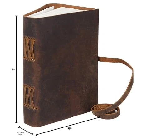 Premium Quality: Crafted from full grain buffalo leather, this journal is handmade by skilled artisans with decades of experience, ensuring durability and a unique touch. Eco-Friendly Pages: Features 120 sheets of non-refillable, 100% handmade paper made from recycled cotton, acid-free, and wood-free, making it an environmentally conscious choice. Elegant Design: The journal includes a classy string closure and a raw hand-cut design, providing a rustic yet sophisticated look. Size: 7 inches high and 5 inches wide. Versatile Use: Perfect for artists, travelers, and professionals, it serves as an alternative sketchbook, photo album, travel notes, business logbook, hunting journal, poetry book, commonplace book, scrapbook, and Bible journal. Thoughtful Gift: Ideal for any occasion, this journal makes an awesome anniversary, Valentine’s Day, Christmas, or birthday gift for artists, travelers, and anyone who appreciates quality craftsmanship.