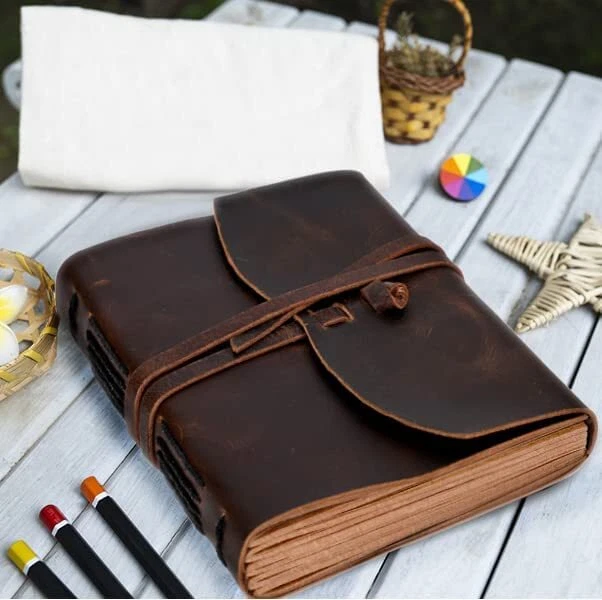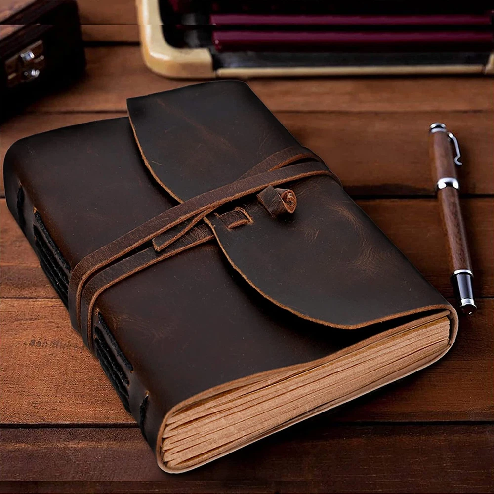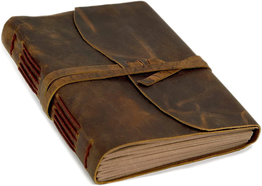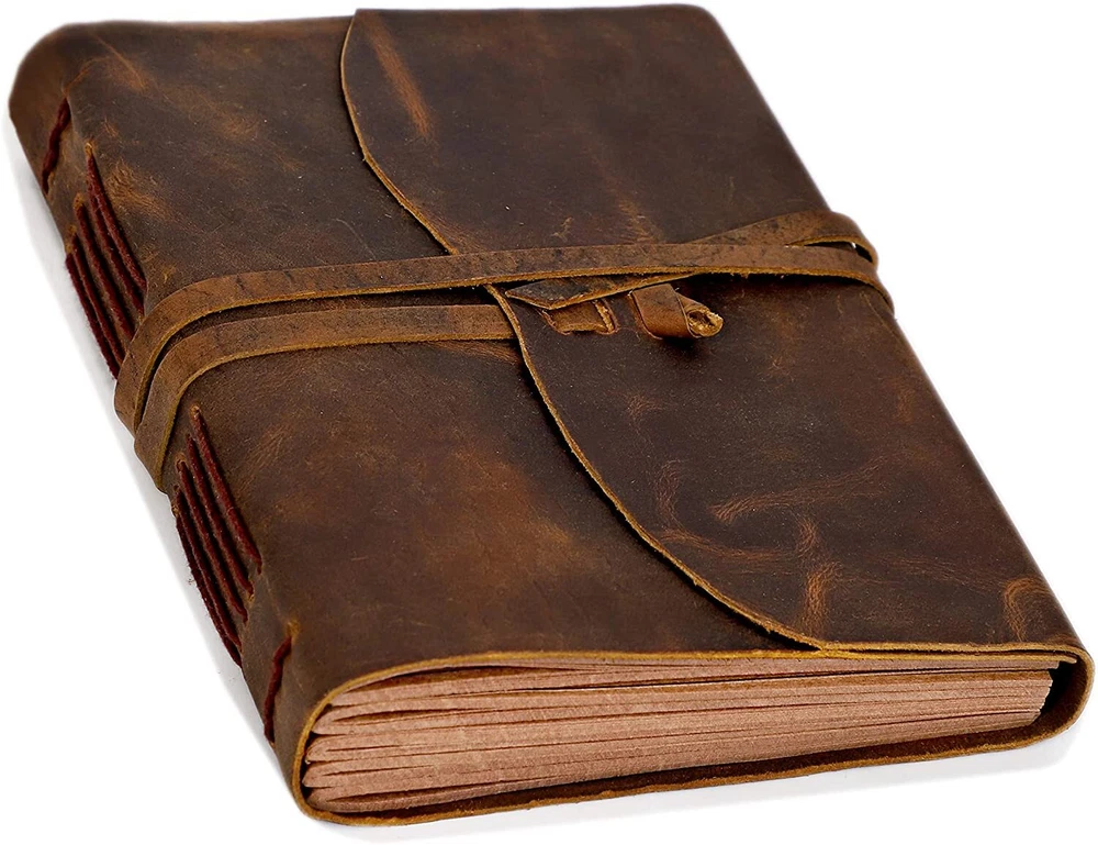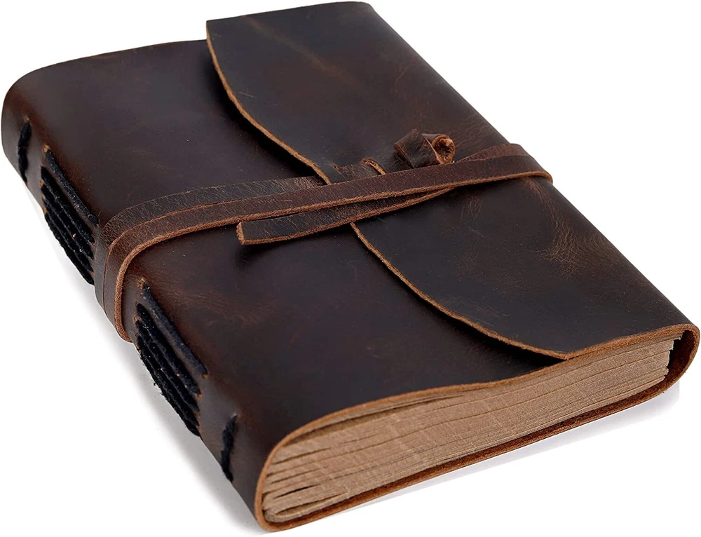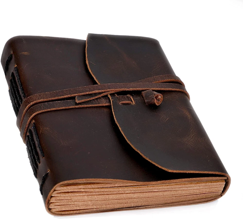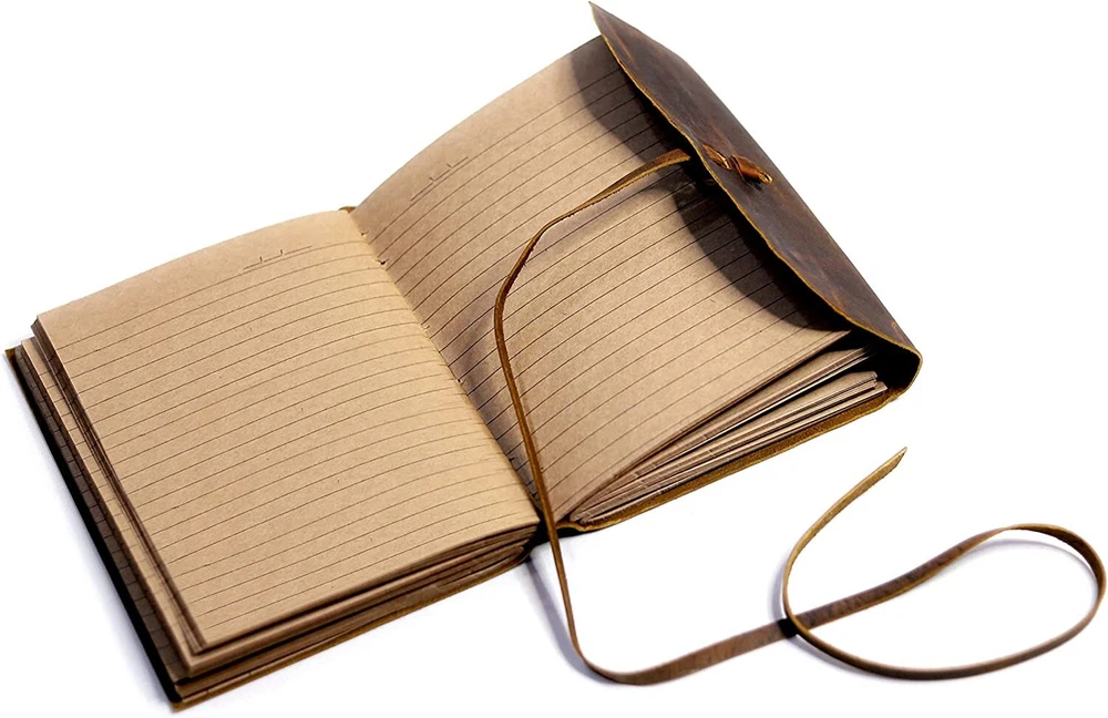 ✔️ PERFECT HANDCRAFT JOURNAL - Ideal Size & Thick Lined Paper: A compact 6" × 8" size makes the leather notebook easy to carry around or slip into a bag. It is not so small that you don’t have space to t express any creativity. Thick, sturdy pages have no bleed-through or ghosting on the other side of the page. Lined paper (6.5 mm spacing) lies flat for ease of writing. ✔️ Use Any Kind Of Pen - Write/sketch/doodle on your journal notebook with a Fountain Pen CalligraphyPen, Ball Pen, Brush Pen, Acrylic Colours, Watercolor. IDEAL USE AND PERFECT GIFT – Perfect Use for Business Executive, Poetry Work, Journalists, Craftsman, Writer. A Lovely Treat for Your Loved Ones for An Anniversary, Birthday or Graduation Present, Or for Someone Starting A New Adventure and A Perfect Gift for Those Who Love Vintage One. ✔️ Dimension – (8” X 6” X 1.5”) With Lined Paper, Easily Handle Notebook, You Can Fit with Minimum Space, Easily Handle in Long Journey. Once You Have Used It You Will Feel Like You Have the Best Journal in the World. ✔️ Handmade Vintage Style – 100% handmade leather books are complemented with a durable thread and a bound-to-last hand-sewn binding, adding to the book’s decorative appeal. Crafted with a burnished finish, our leather journals for writing, unlike other leather notebooks with raw edges, delivers a delicate and retro feeling. ✔️ OUR GUARANTEE : If for any reason you don’t love the Wanderings vintage notebooks please let us know and we’ll sort your issue within one day - It is as simple as that!