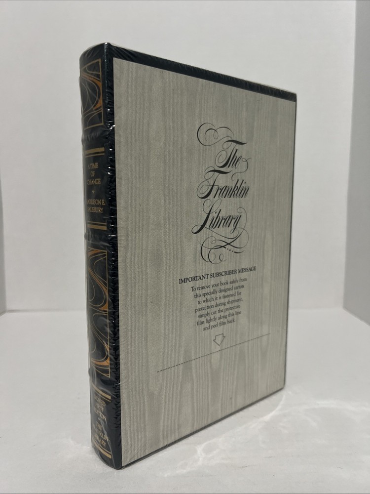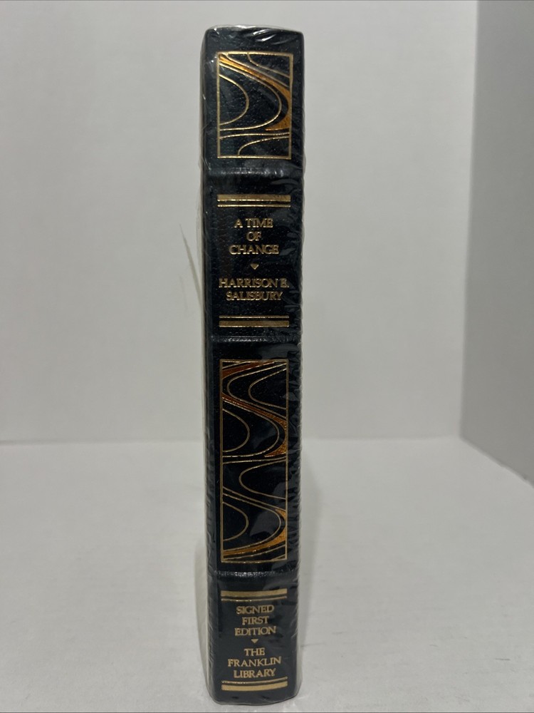 This is a rare and collectible book signed by Harrison Salisbury, a renowned journalist and author. The book titled "A Time of Change" is a first edition leatherbound book published by Franklin Library in 1988. The book is beautifully illustrated by Ronald De Felice and is a must-have for history and journalism enthusiasts. The book is in excellent condition and is an original copy. It comes with special attributes such as collector's edition, signed, illustrated, and first edition. The book is written in English and is an original/facsimile copy. The book is perfect for anyone interested in North American history and is a great addition to any collection.