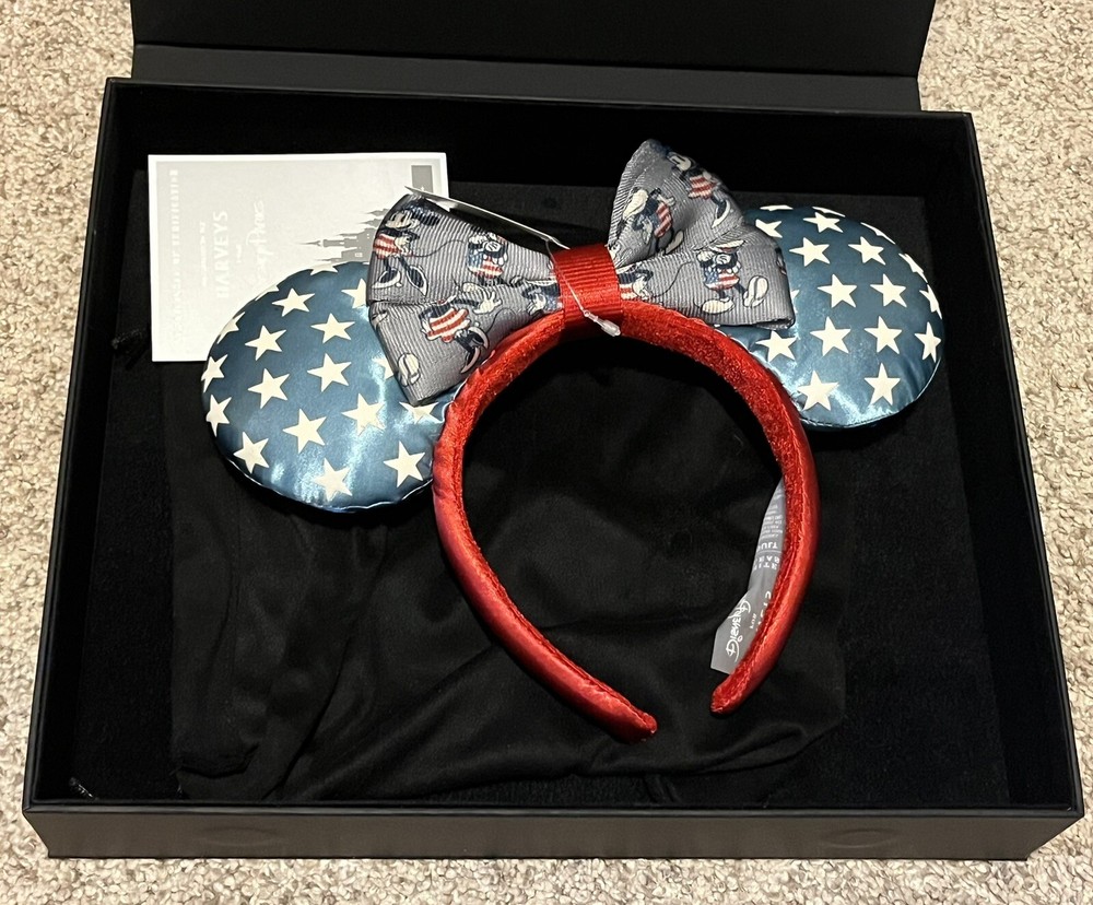 This Harveys Designer Disney Parks American Limited Mickey Ears Headband is a must-have for any Disney fan. The headband features Minnie Mouse and is perfect for adults, teens, and kids. It is perfect for collectors and makes a great gift for any Disney lover. Get your hands on this limited edition headband and show off your love for Minnie Mouse and Disney Parks.