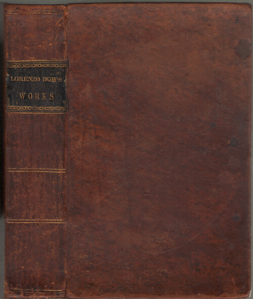 • 24316 Dow, Lorenzo History of Cosmopolite or the Four Volumes of Lorenzo Dow's Journal Concentrated in One...added The 'Journey of Life' by Peggy Dow 1848 Joshua Martin, Washington, OH 4th Edition. Very Good- /No DJ As Issued. Text is clean. Previous owner inscription on front free endpaper. Leather binding with one inch tear between front cover and head of spine. . The journals of a lively Methodist itinerant preacher of the early 19th Century.