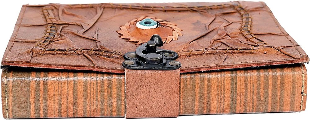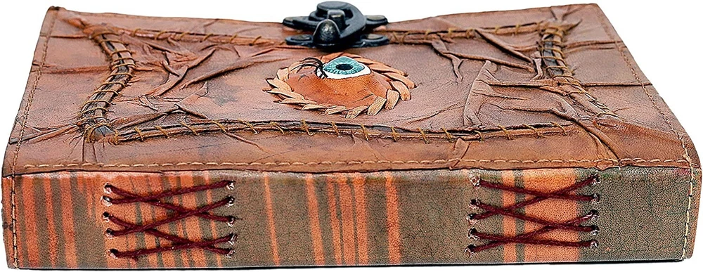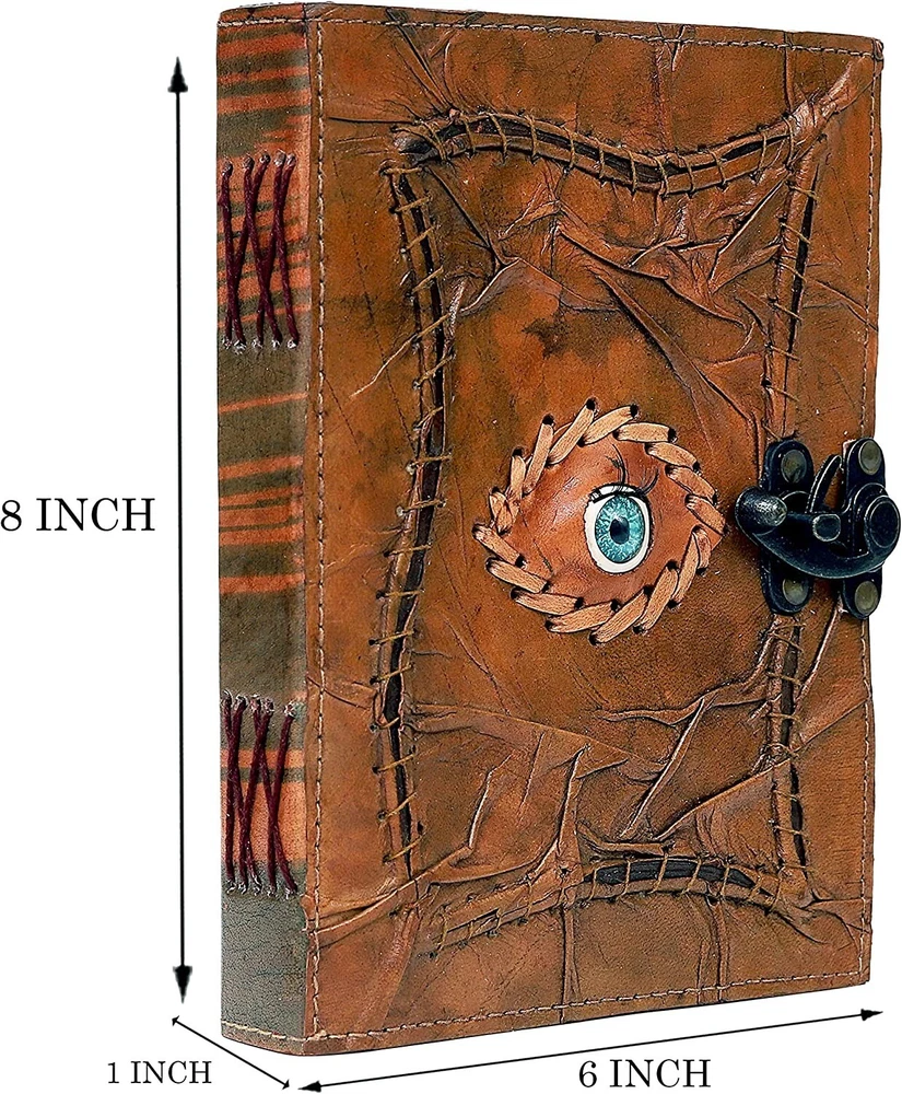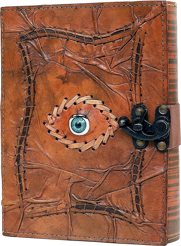 Vintage Hocus Pocus Book of Spells Leather Journal Evil Eye Diary Grimoire Book Spell Book Prop Gifts (brown) VINTAGE LOCK AND STURDY BINDING - The vintage clasp lock will keep all your valuable writing locked inside. Sturdy hand stitched binding to make sure that no paper comes out loose from your Spell BOOK. USE ANY KIND OF PEN - Size: The book is approximately 8 inches tall, 6 inches wide, and 1.2 inches thick, and the pages are lined. UNIQUE CLASP LOCK EASY TO OPEN - Stylishly Medieval - Ancient looking cotton lined paper combined with the beauty of distressed leather, hand stitched by Artisans, creates a keepsake you will cherish forever. Makes a great Hocus Pocus gifts for the men, women, and wiccans in your life! Spell Book Journal Merchandise Pop socket Grimoire Wiccan Witch Prop Spells Décor Horror Blank Notebook Gift Props Spell book Blanks With Clasp Coloring Books For Men Women Adult MANY USES - Hocus Pocus merchandise Can be used as a Hocus Pocus gifts , Hocus Pocus Book, Hocus Pocus journal, spell books Halloween decorations, book of spells Halloween décor. grimoire spell book, drawing or sketching and compact for carrying in your bag. Ideal for alternative Artist Sketchbooks, Photo Album, Traveling Notes, Business Executive, Logbook, hocus pocus spell book , Journalists, Food Planner, hocus pocus décor .