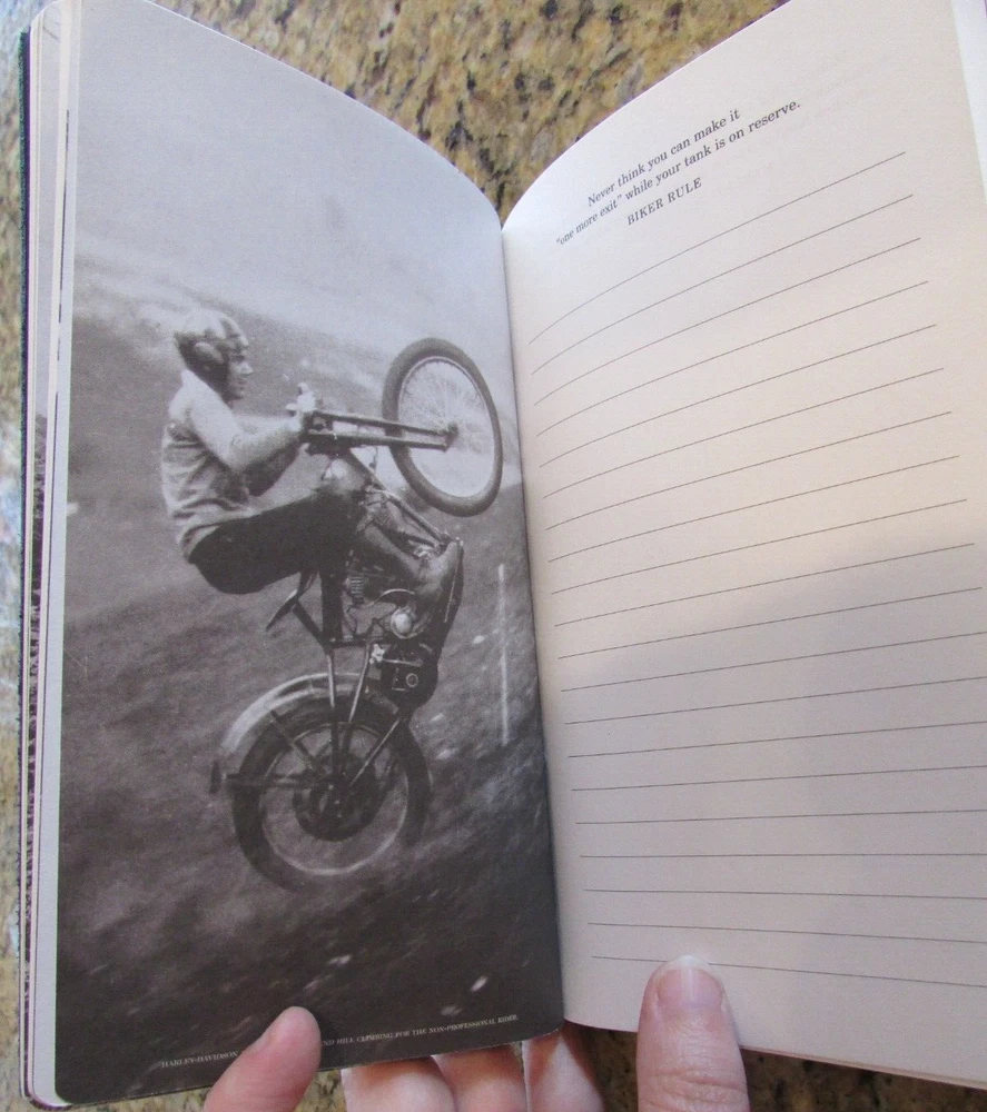 This leather-bound journal is the perfect gift for any motorcycle enthusiast. With 176 blank pages, this diary is ideal for jotting down notes, sketches, or anything that comes to mind. The book measures 7.5 inches in length, 4.5 inches in width, and 0.5 inches in height, making it easy to carry around on the go. The Hog Log journal is published by Chronicle Books and is a great addition to any collection. It's a type of diary or journal, featuring blank pages, making it versatile for any use. The journal is the genres of Games & Activities, Transportation, Motorcycles, & General and Guided Journals. So if you're looking for a unique gift for a motorcycle enthusiast, this is definitely the one to choose!