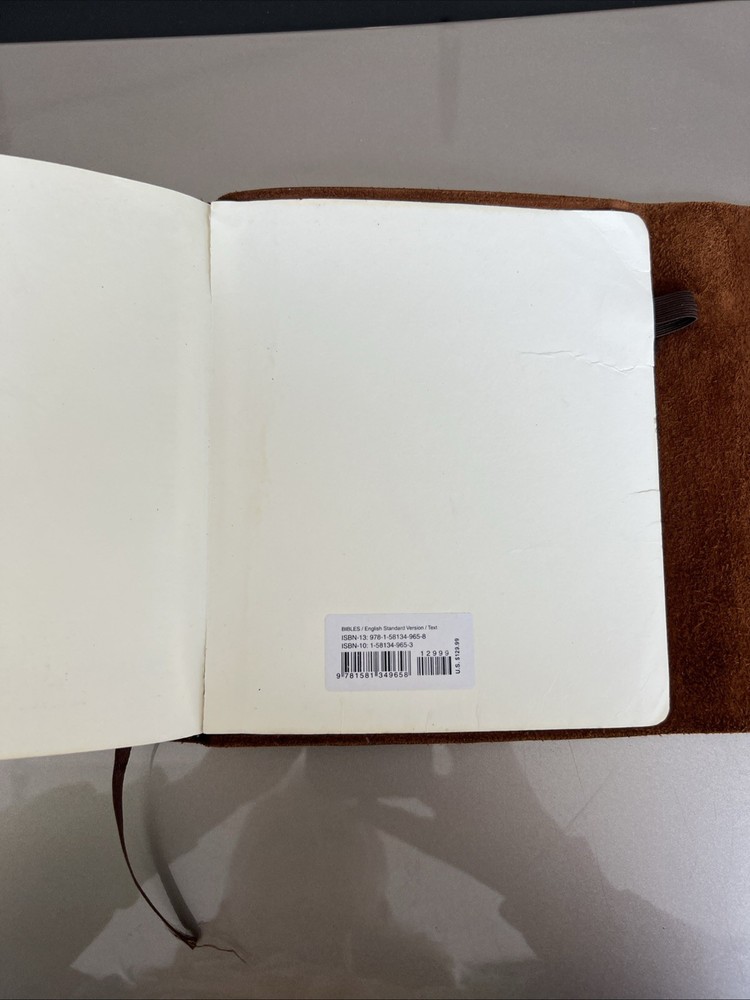 Very minor amount of light highlighting No writing found Needs new leather tie...