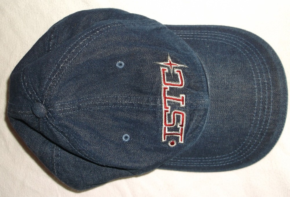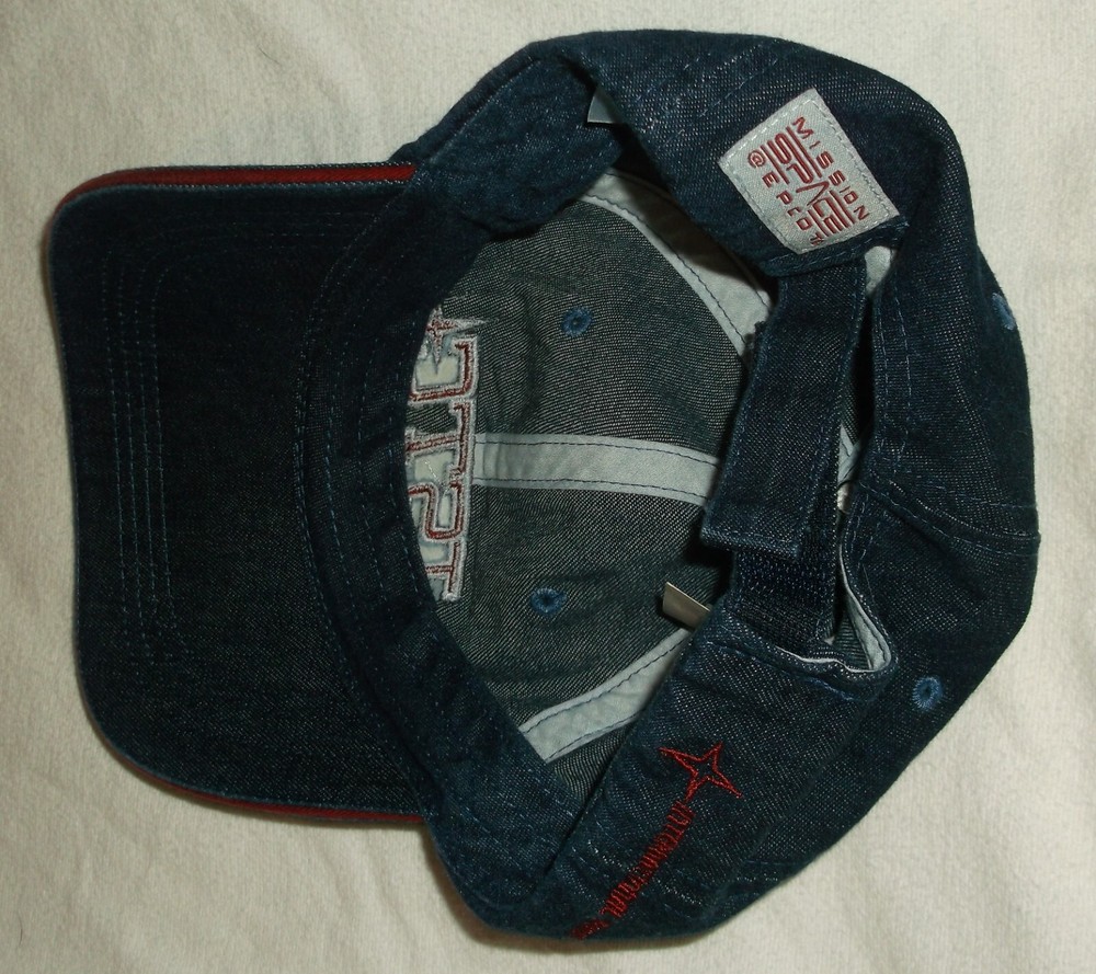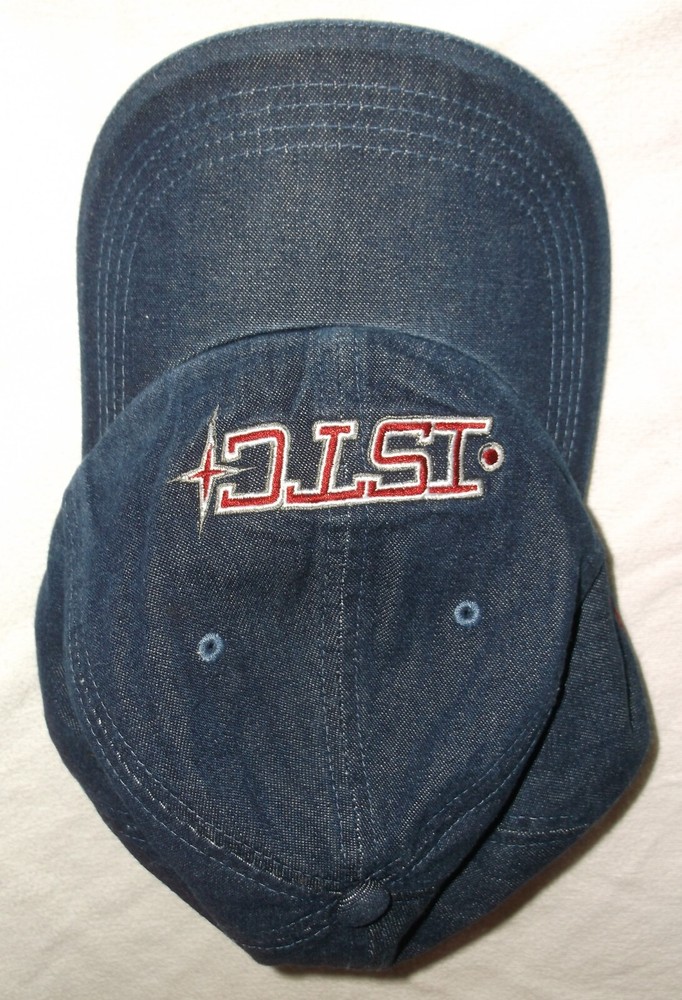 This is a new Walt Disney World brand cotton baseball cap. Adult one size fits most with adjustable back strap. Color is dark denim blue with red and white. Front says "ISTC". Back says "International Space Training Center" and the back has a patch that says "Mission SPACE Epcot". Photos are of this exact item. From a smoke free home. Thank You for Looking!!!