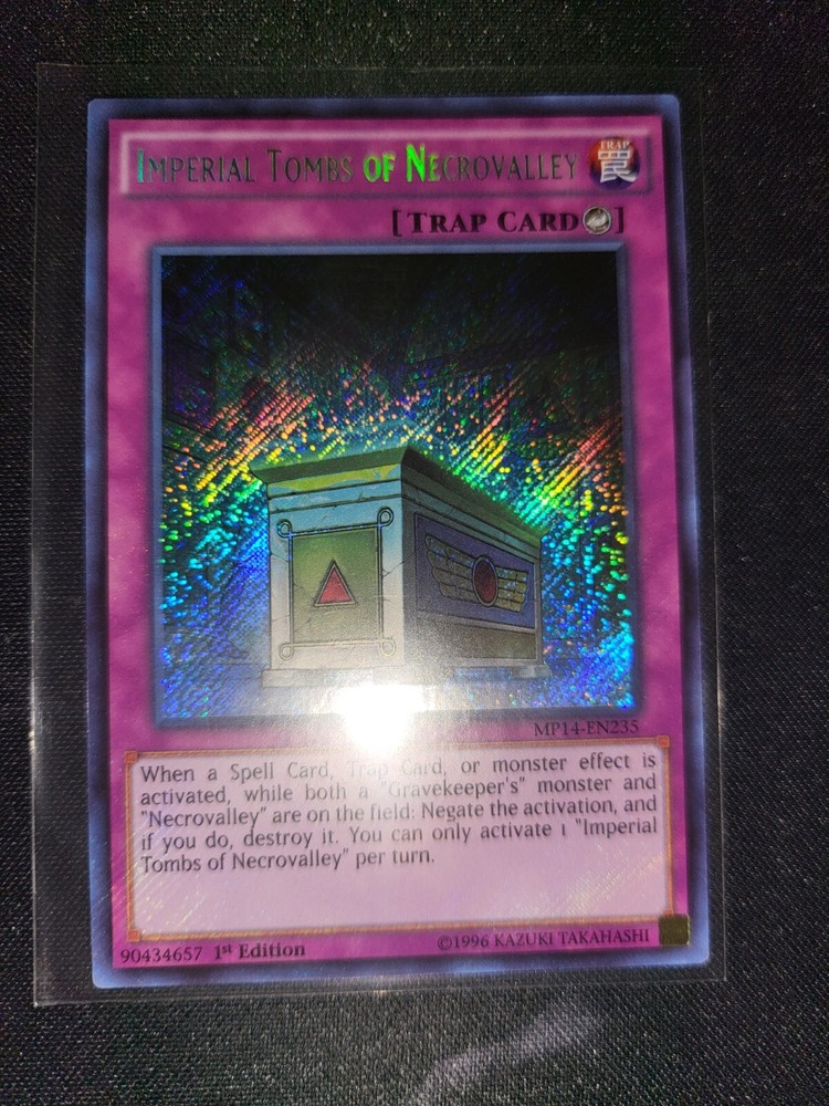 The Imperial Tombs of Necrovalley MP14-EN235 2014 Mega-Tins Mega Pack 1st Edition card is a highly sought-after collectible in the Yu-Gi-Oh! TCG universe. Manufactured by Konami in 2014, this Secret Rare Trap-Normal card features the iconic Imperial Tombs of Necrovalley design. As part of the 2014 Mega-Tins Mega Pack set, this English language card is a valuable addition to any collector's deck. Its rarity and 1st Edition status make it a prized possession for fans of the game.