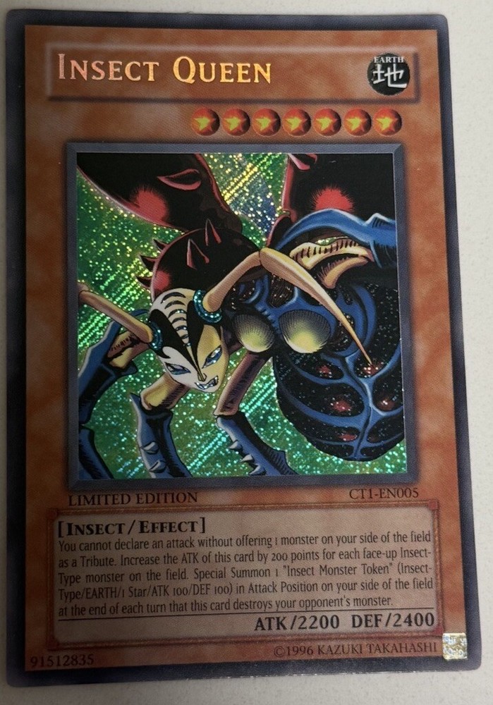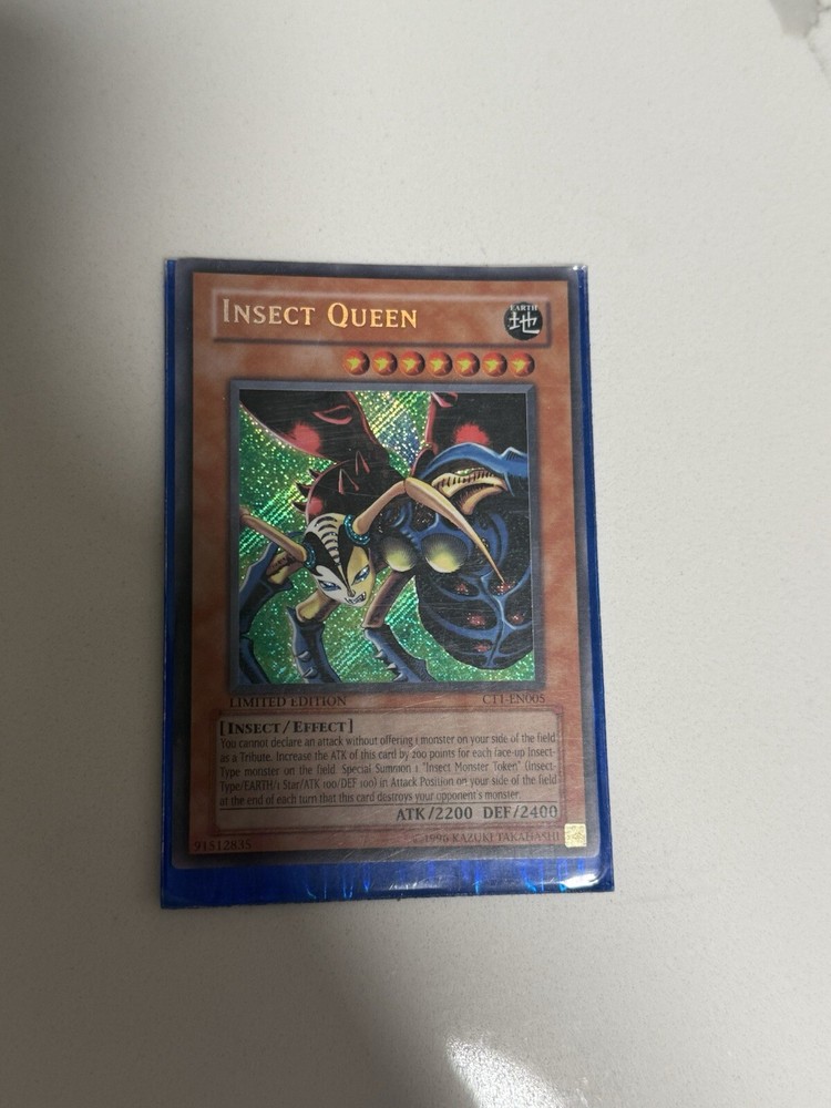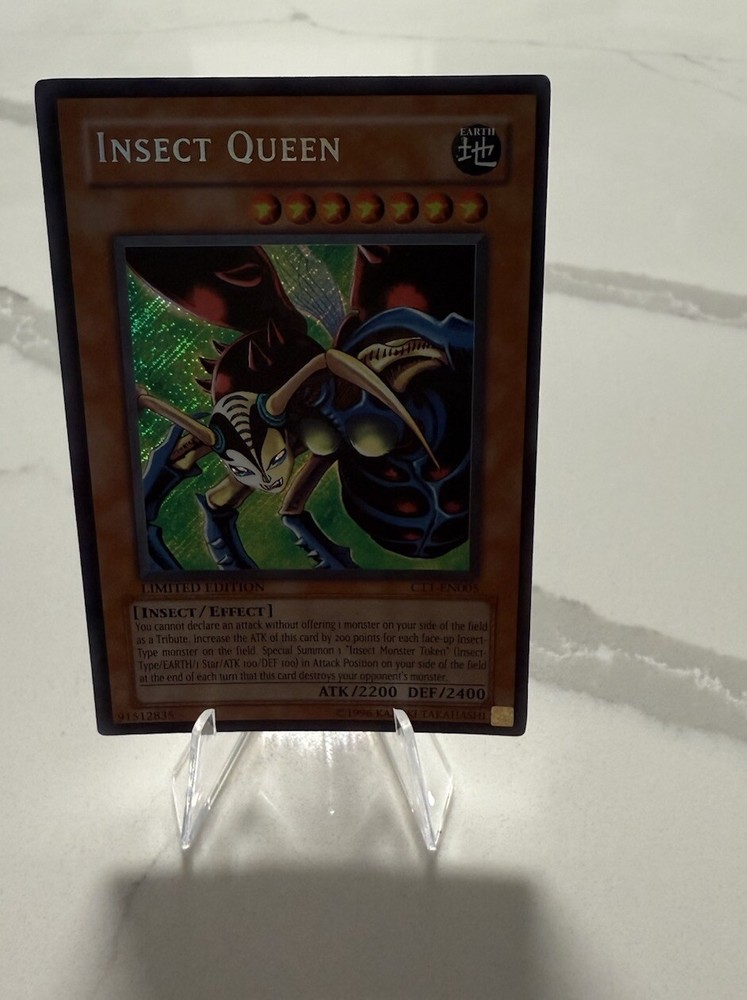 This card is a must-have for any serious collector! The 2004 Limited Edition Collectors Tin version of Insect Queen CT1-EN005 is in fantastic condition, with crisp edges and vibrant artwork. It brings back serious nostalgia from the early Yu-Gi-Oh! days, and the tin packaging adds extra value. A rare gem that stands out in any collection—totally worth it for fans and investors alike!