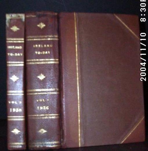 Ireland Today, Frank O'Connor 1936, 1938 HB Scarce Pre-War Liberal Irish Jnl Click to Enlarge Description: Ireland To-Day Volume 1 (June 1936 through December 1936, Issues Nos. 1 through 7, seven issues. Complete.) And Volume 3 (January, February and March, 1938, Nos. 1, 2, and 3. All issued). Dublin, 1936, 1938. 2 volumes. Three-quarter leather over cloth hard binding with gilt lettering and decoration, large 8vos, original illustrated journal covers bound-in, advertisements (some illustrated). Volume 1 includes an index. Contains numerous articles relating to Ireland including non-fiction, book reviews, poetry and short stories. Average issue runs 70-odd to 80-odd pages plus advertisement pages. Subjects of the articles include:Irish Myths, Is an Irish Culture Possible? England and Ireland, Irish in the Schools, Intermarriage, Irelands Population Problems, The Foundations of Modern Ulster, the League of Nations, Hospital Adminstration in Ireland, The Architecture of Belfast, The Irish Bourgeoisie, The Gaelic Tradition in Literature, The Priests and the People, Ireland and Germany, the Unpopular Front, Ireland in the European Chaos, Swift and his Ireland, Rural Ireland, and much more. Ireland Today was a literary magazine that ran from June, 1936 to March, 1938. It was edited by Frank O’Connor and published work by many emerging and established Irish writers of the time, including Brian Coffey, Daniel Corkery, Denis Devlin, Michael MacLaverty, Ewart Milne, Sean O'Faolain, Liam O'Flaherty, and Mervyn Wall. [Wikipedia} Scarce short-lived Irish liberal journal. Condition: Covers are in Good- condition (Much wear and tear along spines and at spine ends, pieces missing from spine leather, some soiling. Dust soiled edges.)The interiors of both volumes are in Very Good condition (Age browning of issue covers. Texts and illustrations are clean. Bindings are tight.) Check our other auctions and store listings for additional unusual items. ( Click here to view all of our auctions ) Shipping : DOMESTIC Domestic Media Mail shipping, including Delivery Confirmation and Insurance, is free. This applies to any address in the US and Puerto Rico, as well as to APO addresses. Media Mail, available only for domestic shipping, is trucked to its destination, and shipped by boat to Alaska, Hawaii and Puerto Rico, On the average it takes 3 to 10 days to arrive, depending on the distance and the vagaries of the US Postal Service. Shipments to Alaska, Hawaii, APO and other off-shore addresses take longer to arrive. During the pre-Christmas season, Media Mail is subject to delays. When filling out the Ebay Detailed Seller Ratings, please keep in mind that the sometime slow arrival is due to the performance of the Postal Service and not to any tardiness on the part of the seller. For expedited domestic mailing, Priority Mail shipping can be arranged at an additional cost. For most books, we charge between two and nine dollars for this service, including delivery confirmation and insurance. For heavy sets or high-value books, the charge may be higher. INTERNATIONAL For international shipping, we urge bidders to request quotes of shipping costs before bidding. We will also specify international shipping options and prices after the conclusion of the auction. We will try to provide a range of options but buyers should be aware that all shipments are via air mail and shipping of heavy books can be expensive. COMBINED SHIPPING For international transactions, combined shipping of multiple lots can substantially reduce postage. This is especially the case for M-Bag shipments of up to 11 lbs and for multiple volumes that will fit into a single Priority Mail flat rate box. For the above options, the postage rate is fixed independently of the weight. INSURANCE All of our domestic shipments are fully insured. Payment : No credit cards except through PayPal. Paypal payments should be in US Dollars but Euros are also acceptable if prior agreement is obtained. As of October 2008, Ebay is imposing the requirement that all payments be made via Paypal. We understand that this requirement may be a problem to some of our customers and we will do our best to accommodate their needs. inkfrog terapeak