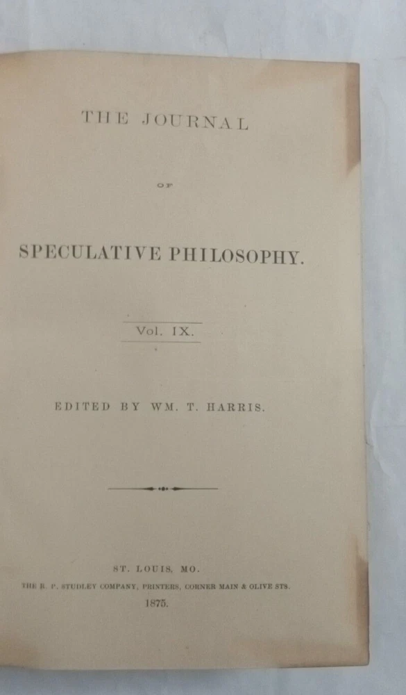 JOURNAL OF SPECULATIVE PHILOSOPHY VOL. IX.-X. 1875...