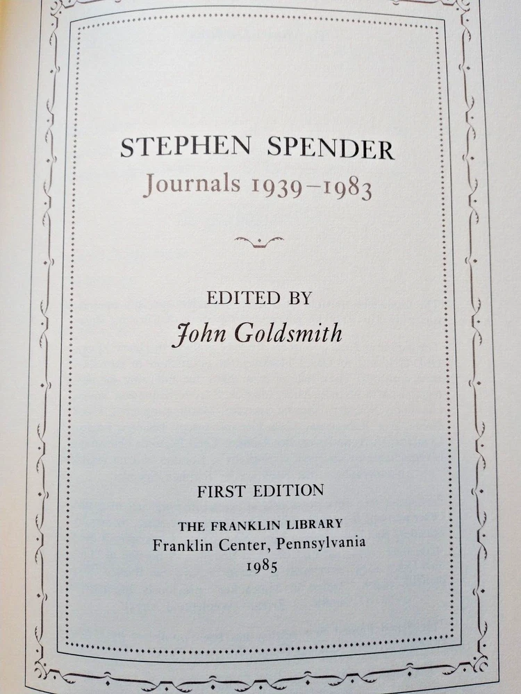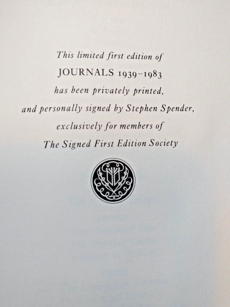 Delve into the literary journey of Stephen Spender with this limited first edition of JOURNALS 1939-1983, published by the Franklin Library in 1985. Encompassing the classics of literature and fiction, this leather-bound volume is a treasure for both readers and collectors alike. It boasts exquisite illustrations and is signed by the author himself, making it a unique piece of history. Crafted in the United States, this original printing maintains the integrity of Spender's work and showcases his literary genius. It is a luxurious addition to any collection, with each detail reflecting the quality and prestige associated with the Franklin Library. Celebrate the legacy of one of North America's distinguished writers with this collectible edition.