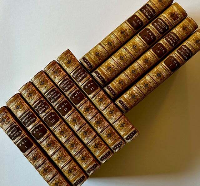 The Life of Samuel Johnson, L.L.D. Including a Journal of His Tour to the Hebrides (Complete in 10 Volumes -- Signed Zaehnsdorf Bindings) Author: James Boswell Title: The Life of Samuel Johnson, L.L.D. Including a Journal of His Tour to the Hebrides (Complete in 10 Volumes -- Signed Zaehnsdorf Bindings) Publication: London: John Murray, 1835. Description: Full leather. A lovely complete set of the first illustrated edition (1835), bound in the late 19th century in a full tan morocco by the formidable Zaehnsdorf Bindery of London (for the Gardenside Bookshop of Boston). Intricate gilt-tooling and design within the compartments, 3 separate offsetting dark-brown leather labels along each spine. Just the faintest touch of light soiling to several of the panels, lavish former owner bookplates (The McGinley family of Wilton, Connecticut) at each front pastedown and facing front free endpaper. Uniform 16mos, top-edges gilt, wonderful full-page engravings complementing Boswell's immortal text throughout. (Continuing from the title page: "To Which Are Added, Anecdotes by Hawkins, Piozzi, Murphy, Tyers, Reynolds, Steevens, &c -- And Notes by Various Hands"). Very Good +. Seller ID: 23423 Appledore Books Waccabuc, NY We offer an eclectic selection, specializing in childrens, art, photography, literature, history, chess, sports and more. Guarantee We are members of the Antiquarian Booksellers' Association of America (ABAA) and we stand behind what we offer for sale. Any item may be returned for any reason within 30 days of receipt. Shipping All books shipped to US destinations are sent US Post Office Media Mail. Delivery typically takes a week, but may be longer, especially during the holidays. Faster shipping is available, please contact us for a price quote. We will combine shipping on items purchased at the same time. If you check out immediately and are overcharged for shipping during checkout, we will send you a prompt refund, once the actual shipping costs are known. Feedback We leave feedback for buyers once they have posted feedback for us. If you are unhappy with any aspect of a transaction with us, please contact us immediately. We work hard to keep buyers happy and to resolve the rare problem promptly. This listing was created by Bibliopolis.