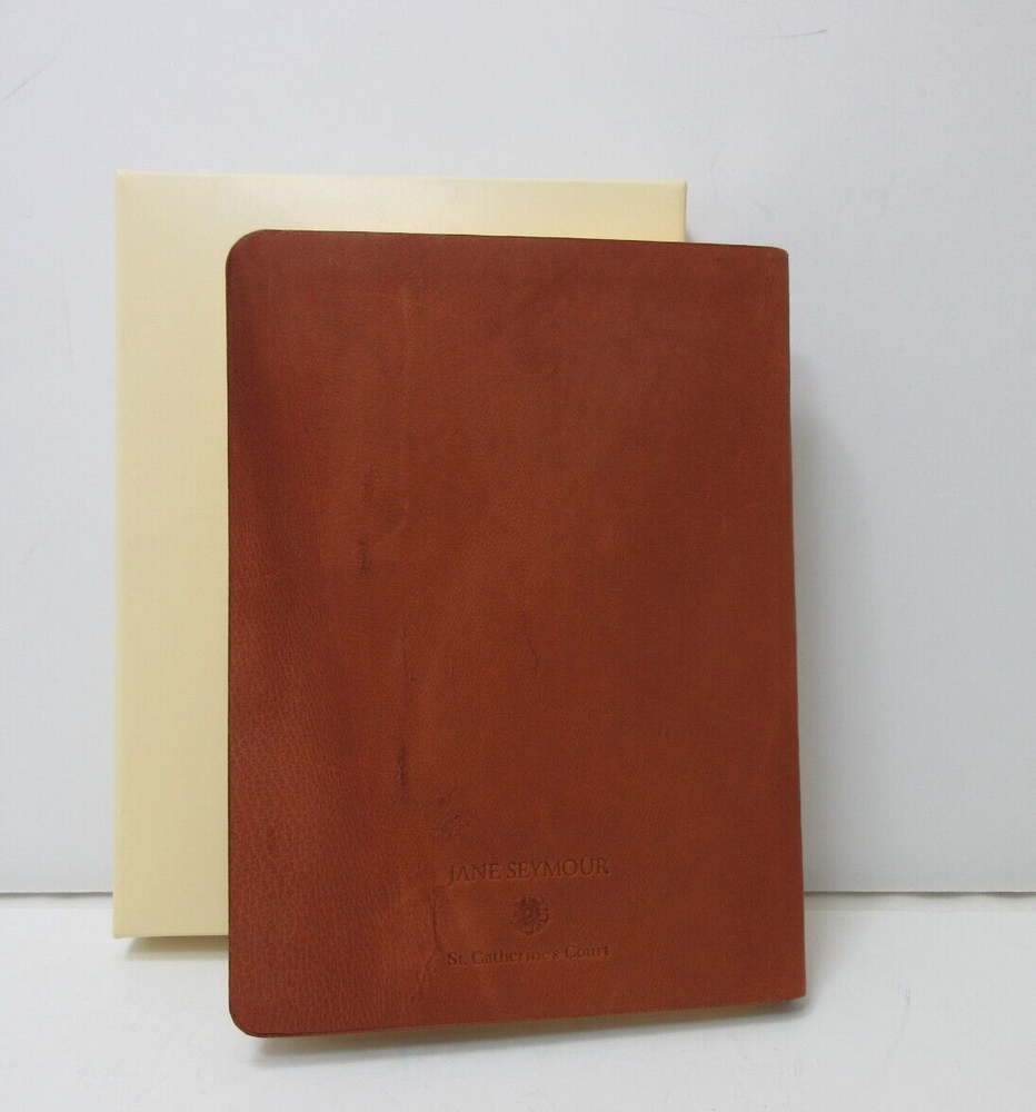 Jane Seymour for Catherine's Court leather travel journal. Full-grain leather cover is soft, light and flexible. Keep an ongoing record of all your travels. A flexible smyth-sewn hand-made binding with rounded corners. Includes 224 lined journal pages, international air distances and weather, world time zones and much more. Measures 5-3/8" x 7-3/8" Smyth sewn for strength and longevity Cream-white, acid-free, archival quality paper with gilt edges Double faced cream satin ribbon marker Includes: Journal Entry Pages, Perpetual Calendar, Metric Conversion, International Travel Information, Online Resource Guide This journal is reduced from $70.00. If you’re buying multiple items from us, we are happy to ship everything to you in the same package. eBay will automatically combine the shipping costs. Simply add your items to your shopping cart, and ebay will adjust the shipping cost at checkout.