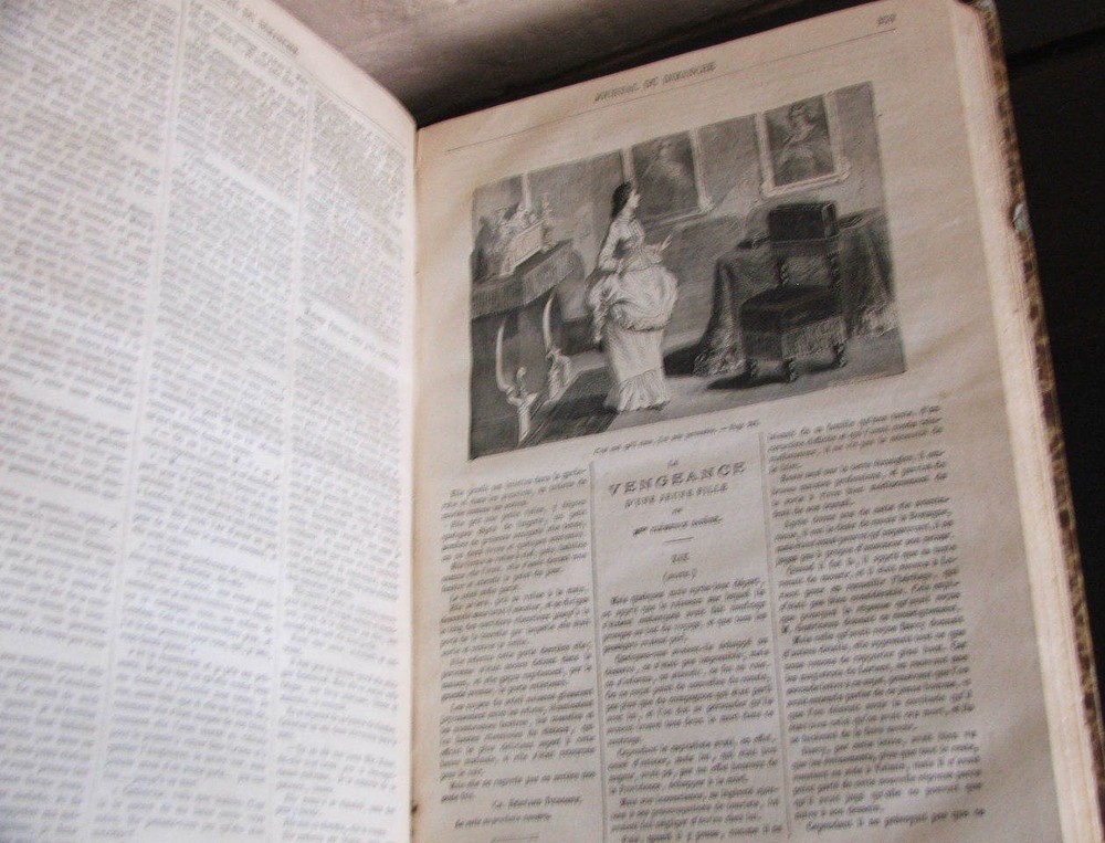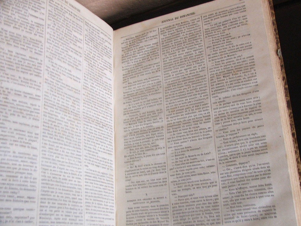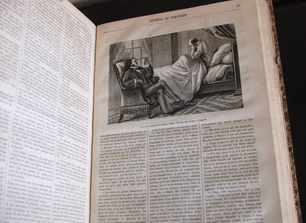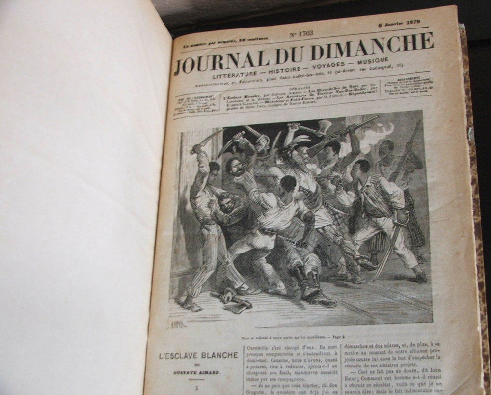 Journal Du Dimanche - Littérature - Histoire - Voyages - Musique. du 6 janvier 1878 au 29 décembre 1878 (Complete year). First edition. Entire year of 1878 bound in one volume. Published Paris: Le Journal du dimanche, 1878. Text in French Folio, 9" x 12 1?4", 416pp. + 416pp., illustrated with b/w reproductions. Bound in quarter green morocco with gilt spine titles over marbled boards, marbled endpapers. Very good, bright, attractive example.