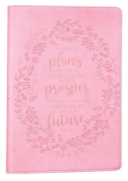 This deluxe A5 journal features a flexible and durable imitation leather cover displaying an inspirational message in heat-debossed lettering. 240 lined gilt-edged pages with ribbon marker. 21 x 14.5cm. Pink / For I Know The Plans I Have For You / Jeremiah 29:11Publisher Description:*\For I know the plans I have for you†declares the Lord “plans to prosper you and not to harm you plans to give you hope and a future.\* Jeremiah 29:11 Aspiring or avid writers wanting to journal their thoughts from the day will enjoy this elegantly designed LuxLeather journal. The beautiful pink color and embellished details make this journal a lovely addition to your daily routine. This journal makes an excellent gift selection for recent graduates or those choosing a new path in life. The artistically designed Scripture featured on the cover will be a daily reminder that the Lord is in control and knows what is to come.