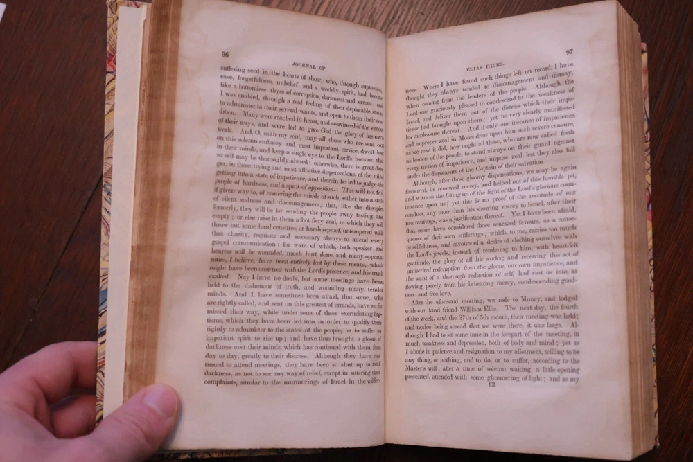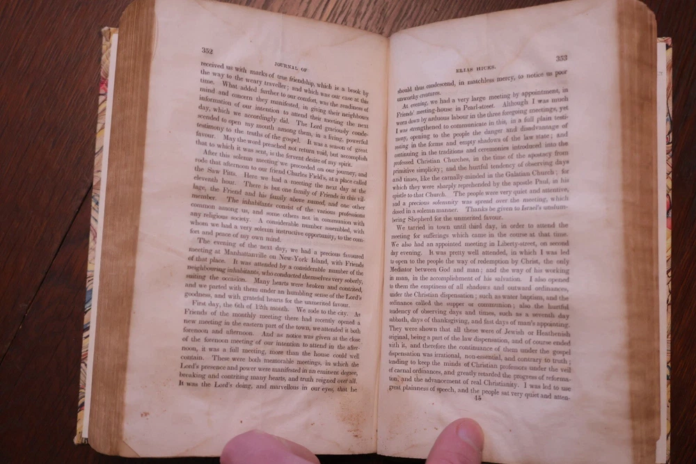 Journal of The Life and Religious Labors Of Elias Hicks written by himself New York: Isaac T. Hopper, 1832. 451 pages. Measures 8 3/4” x 5 5/8” Book has new 1/4 leather fine binding. No foxing but some water damage. See pictures for details and contact me if you have any questions. Items can be returned up to 14 days from purchased if returned in same condition as it was shipped.
