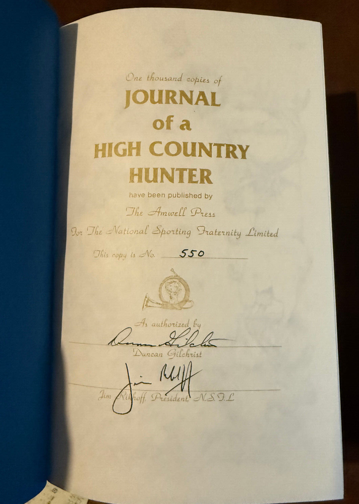 Journal of a High Country Hunter Gilchrist SIGNED Limited 550/1000 AMWELL PRESS Please see my other listings for Amwell Press books, I am happy to combine shipping...