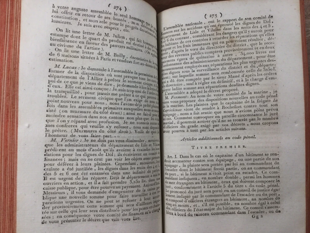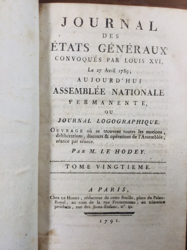 Rarious volume of the Journal of the Estates General published in August 1791 by Étienne Le Hodey de Sault Chevreuil in Paris at the Hodey. Exceptional work where all the motions, deliberations, discourse and operations of the National Assembly are located. This volume particularly contains articles on Brie Comte Robert, Senegal, Chinon, Dol de Bretagne ... There are also all political events in January 1791. Extraordinary work, a precious historical source with many fascinating discourse on the first steps of the French Revolution. Superb work in 8 bound full vintage calf, back with nerves decorated with red and green pieces of tomaison, full of 500 pages. Good condition for a book that is over 240, beautiful binding see photos. • We only sell authentic documents • We accept payment by check • In the event of grouped purchases we reduce postal costs • We have many historical documents on the French Revolution, the Empire and the Old Regime to discover on our Ebay store. Do not hesitate to subscribe to receive new announcements in priority. Rarious volume of the Journal of the Estates General published in August 1791 by Étienne Le Hodey de Sault Chevreuil in Paris at the Hodey. Exceptional work where all the motions, deliberations, discourse and operations of the National Assembly are located. This volume particularly contains articles on Brie Comte Robert, Senegal, Chinon, Dol de Bretagne ... There are also all political events in January 1791. Superb work in 8 bound full vintage calf, back with nerves decorated with red and green pieces of tomaison, full of 500 pages. Good condition for a book that is over 240, beautiful binding see photos. • We have many historical documents on the French Revolution, the Empire and the Old Regime to discover on our Ebay store. Do not hesitate to subscribe to receive new announcements in pr