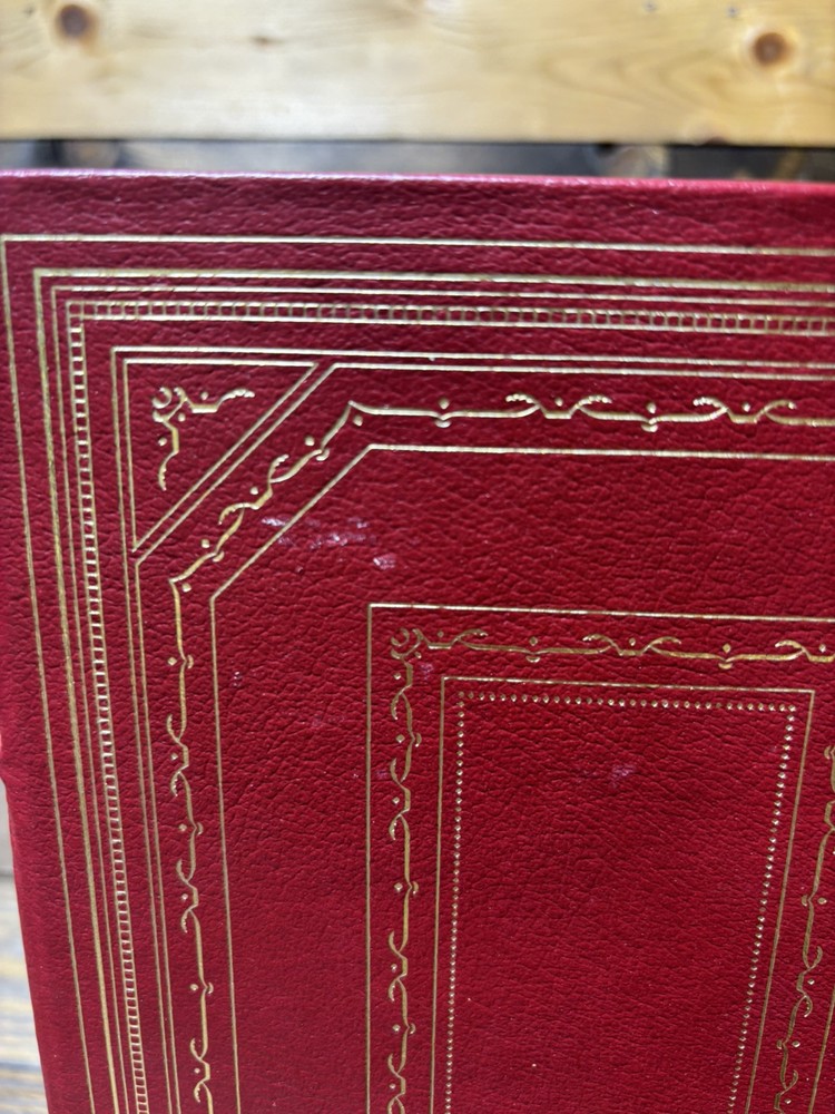 The gold coloring on the top pages is fading off but the sides and bottom are good. There a small white marks on the front. Please see pictures.