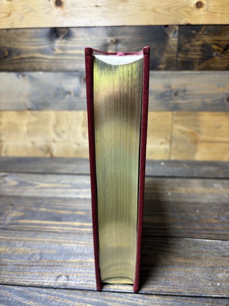 The gold coloring on the top pages is fading off but the sides and bottom are good. There a small white marks on the front. Please see pictures....