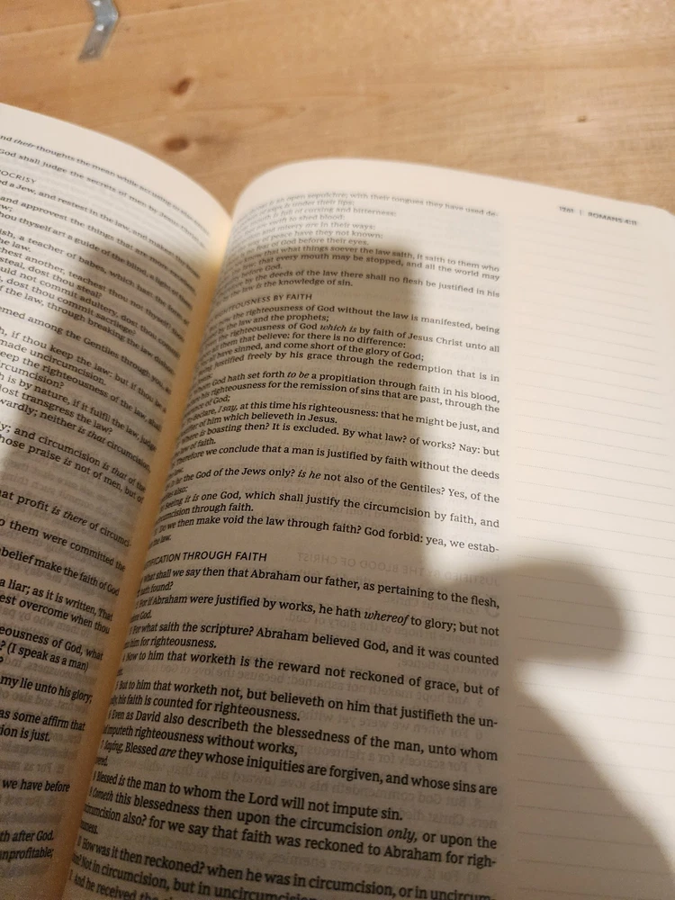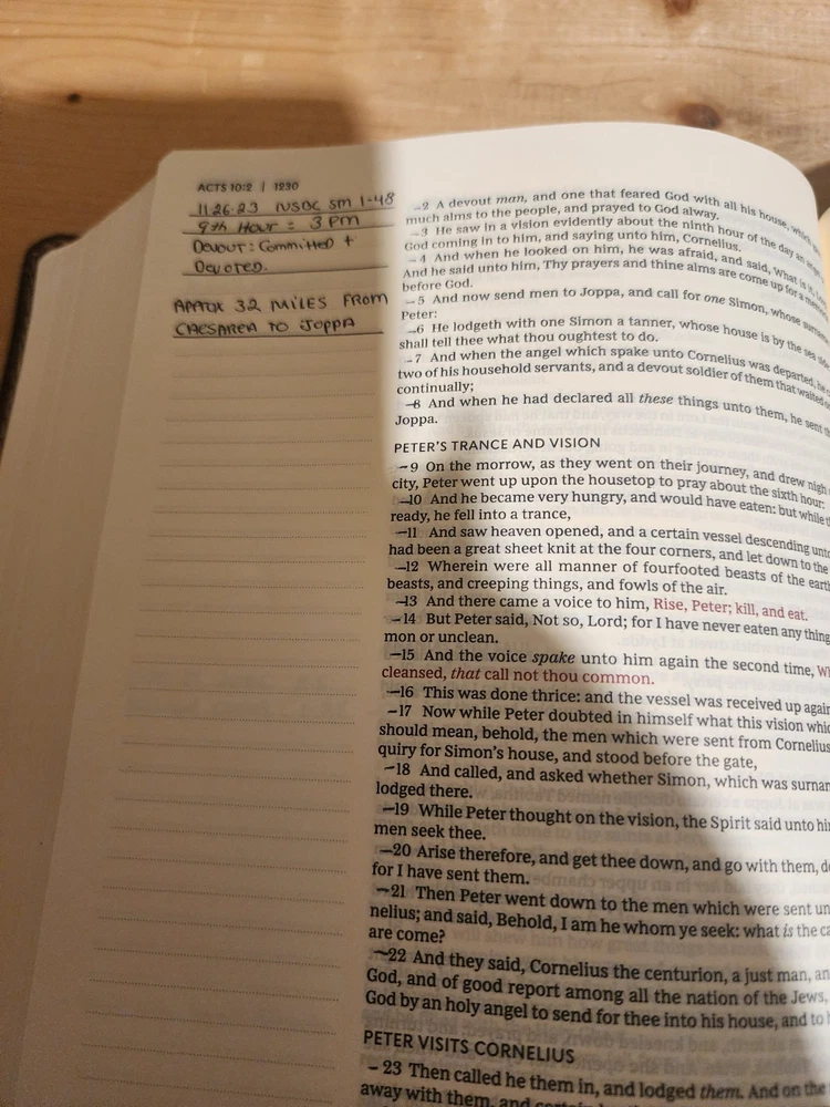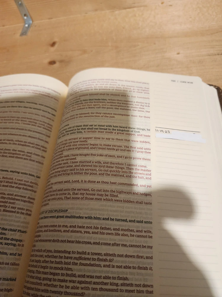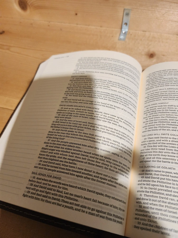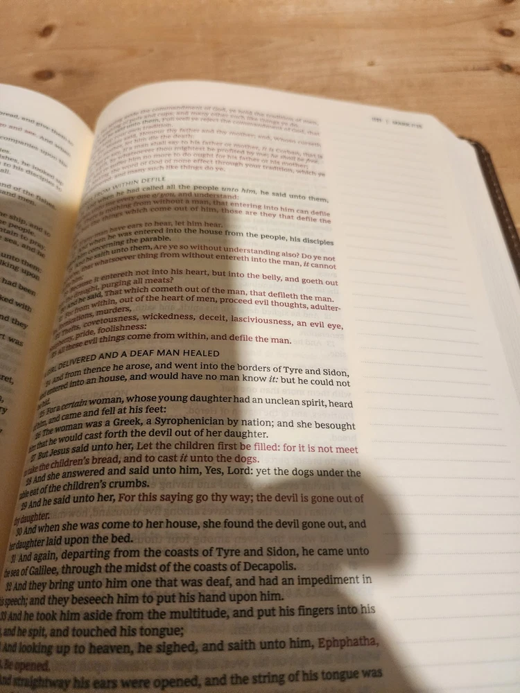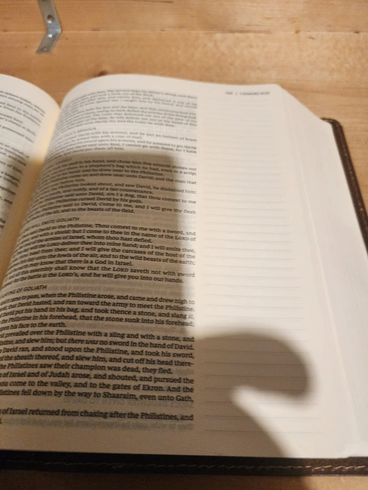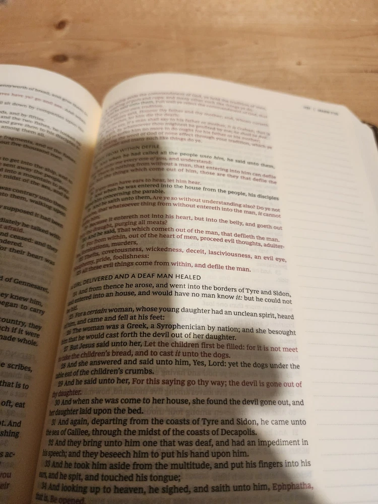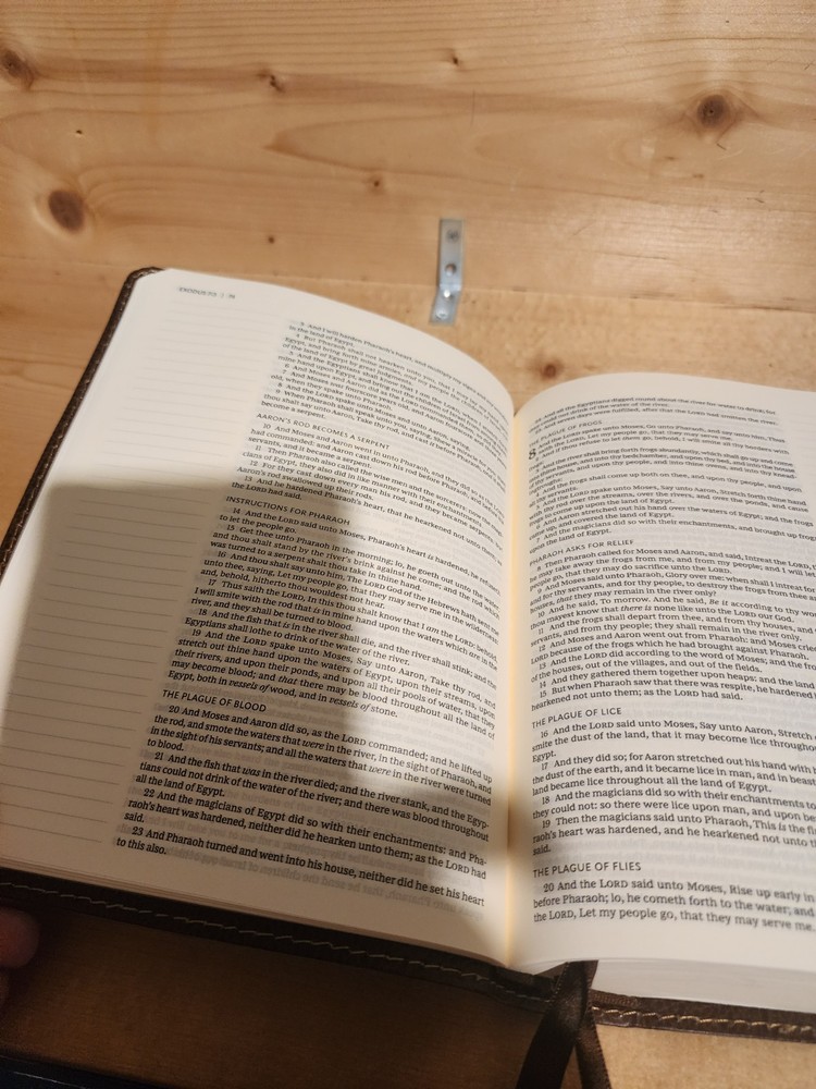 The Bible was in good condition. It appeared the Bible was a little musty being stored away perhaps with some moisture. A couple of pages in Ecclesiastes were damaged at bottom corners likely due to printing problems. One of the gold index tabs for Sol., Isa. and Jer. was misplaced on a Bible page. But overall the Bible was described as seller said. I think the price was $ 15.00 over. But I chose to buy it. Seller was honest and nice. I purchased nicer copy for $ 15.00 less from another buyer.
