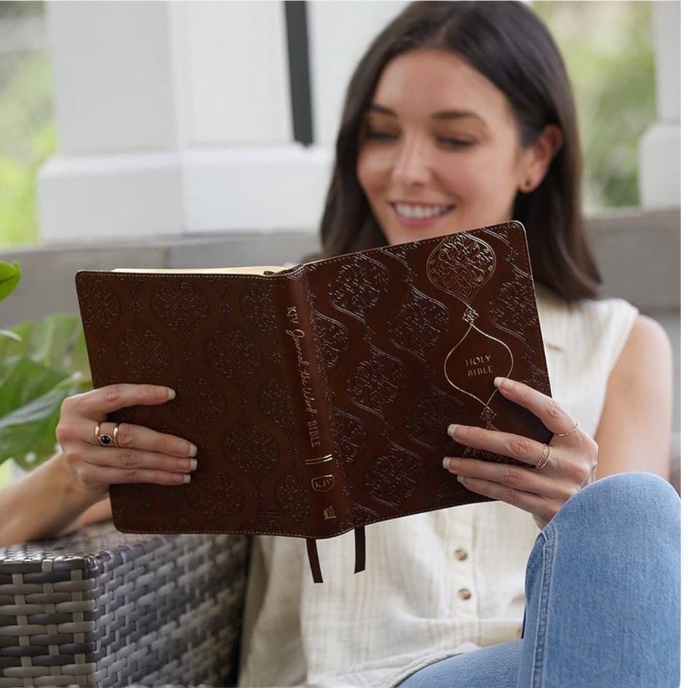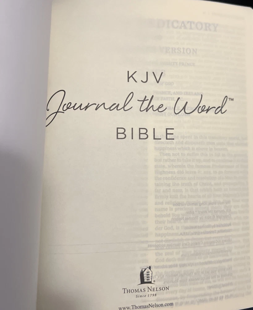 Lined margins allow for plenty of journaling and note taking space making this a perfect Bible to study and engage with Scripture. Published in Thomas Nelson’s exclusive KJV Comfort Print type, which was designed to be the most readable at any size. Do you underline Scripture, take notes during sermons, or express your thoughts through journaling? The KJV Journal the Word Bible is a trustworthy and indispensable resource for anyone who puts pen to paper for deeper engagement with God’s Word. The extra-wide lined margins make this Bible ideal for note taking or journaling. The KJV Journal the Word Bible is truly inspirational from cover to cover and sure to make an excellent gift as a treasured personal keepsake. The Thomas Nelson KJV Comfort Print typeface is designed to honor the timeless beauty of the King James Version, providing a particularly smooth reading experience for longer engagement in God’s Word. Features include: LINED WIDE MARGINS - Provide ample space to record what you are learning from God's Word PREMIUM BIBLE PAPER - The opaque white paper creates a high contrast with the black text, improving readability and limiting bleed through when note taking RED LETTER – Quickly identity the words of Christ printed in red ULTRA-FLEXIBLE LAY-FLAT SEWN BINDING – Durably constructed book binding allows the Bible to lay flat wherever you are reading TWO RIBBON MARKERS - Easily navigate and keep track of where you were reading Clear and readable 8-point KJV Comfort Print