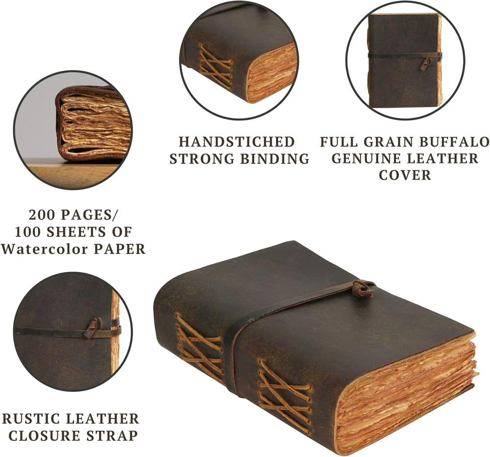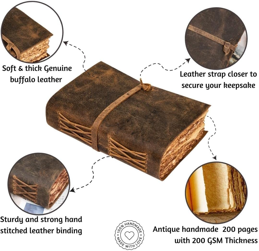 Store New Arrivals Add to Favorite View Feedback LEATHER VILLAGE - Vintage Leather Bound Journal for Men & Women - 8"X6"(A5) | Rustic Brown | 200 Deckle Edges Watercolor Paper - Book of Shadows, Writing Notebook, Sketchbook, Planner, Spell Book Description Item model number LV-A-01 Style Vintage Leather Bound Journal Product Dimensions 8"L x 6"W x 1.5"Th Number of Items 1 Color Distressed Brown Pages 200 Pages Cover Material Leather Sheet Size 8 x 6 inches Manufacturer Part Number LV-A-01 Item Weight 1.65 pounds Theme Book Ruling Plain Ruling Type Plain Manufacturer LV Special Feature Personalized Brand LEATHER VILLAGE Size 8 inches X 6 inches Soft Supple Thick Genuine Leather - The Leather Journal Is Made From Naturally Tanned Full Grain Leather Which Feels And Smells Amazing. It'S Soft And Very Comfortable In The Hands. Don'T Be Fooled With Competitors Using Cheap Substitutes, This Is The Real Deal. Vintage Paper - Vintage Journal Is Made Of Unique Vintage Paper Which Looks Like It Was Pulled From History. You Will Love The Old Looking Handmade Cotton Paper (200 Pages) Which Is Unique To Our Vintage Journals. Use Any Kind Of Pen - Sketch, Doodle, Write On Your Journal Notebook With A Calligraphy Pen Fountain Pen, Brush Pen, Ball Pen, Acrylic Colours, Watercolor And Many More. Stylishly Medieval- Ancient Looking Rustic Cotton Paper Combined With The Beauty Of Distressed Leather, Hand Stitched By Artisans, Creates A Keepsake You Will Cherish Forever. Makes A Great Gift For The Men, Women, And Wiccans In Your Life! Sturdy Binding, Leather Wraparound - Sturdy Hand Stitched Binding To Make Sure That No Paper Comes Out Loose.The Leather Wraparound That Slips In Will Make Sure That The Papers Inside The Journal Are Safe And Secure. Product Description ABOUT US We offer the best prices around on high quality products. Our E-store includes media such as books, movies, music and games while offering electronics, toys, sporting apparel, clothing, tools, general home, garden items and more. SHIPPING We are always working hard to ensure your package arrives as soon as possible. Please understand that some factors like weather, high postal traffic, and the performance of shipping companies are outside of our control. We offer free shipping to the lower 48 states and ship within 2 business days of payment, usually sooner. We do not accept P.O. Boxes. Please provide a physical address. RETURNS We offer a 30-Day Return Policy on items which you are not completely satisfied with. You have the option for a full-refund or an exchange of the item. No returns are available on items shipped outside of the USA. PAYMENT We accept PayPal. CONTACT US This page content is yet to come Please ad us to your favorite seller and visit again later Thank You