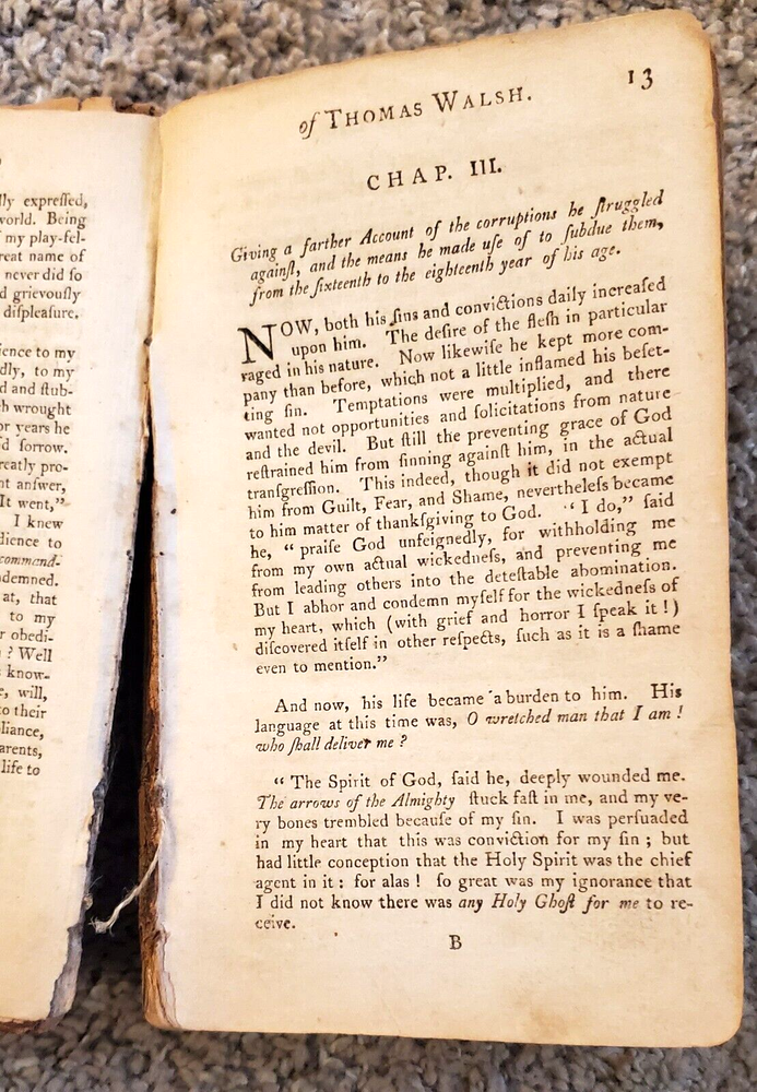 PUBLISHING DATA: NO PUBLISHING COMPANY OR DATE LISTED NUMBER OF PAGES: 356 CONTAINS: 1. LIFE AND DEATH OF THOMAS WALSH 2. EXTRACT FROM JOURNAL OF JOHN NELSON 3. A RACE FOR ETERNAL LIFE; BEING AN EXTRACT FROM THE HEAVENLY FOOTMAN - A SERMOB ON I CORINTHIANS 9:24 WRITTEN BY THE AUTHOR OF THE PILGRIM'S PROGRESS - EXTRACT BY REV. MR. FLETCHER, PHILADELPHIA: FOR EZEKIEL COOPER, 1802